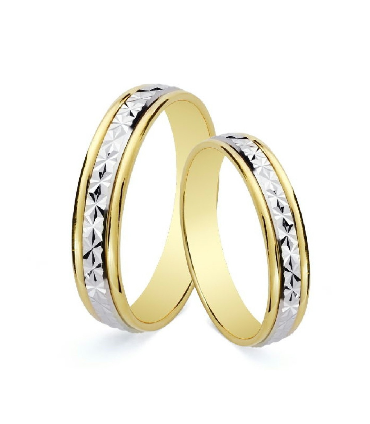 ALIANZAS BARATAS. ENVIOS GRATIS. Alianza oro 18 ktes. Modelo bicolor tallado y brillo. Grosor 4 mm. Talla 24.