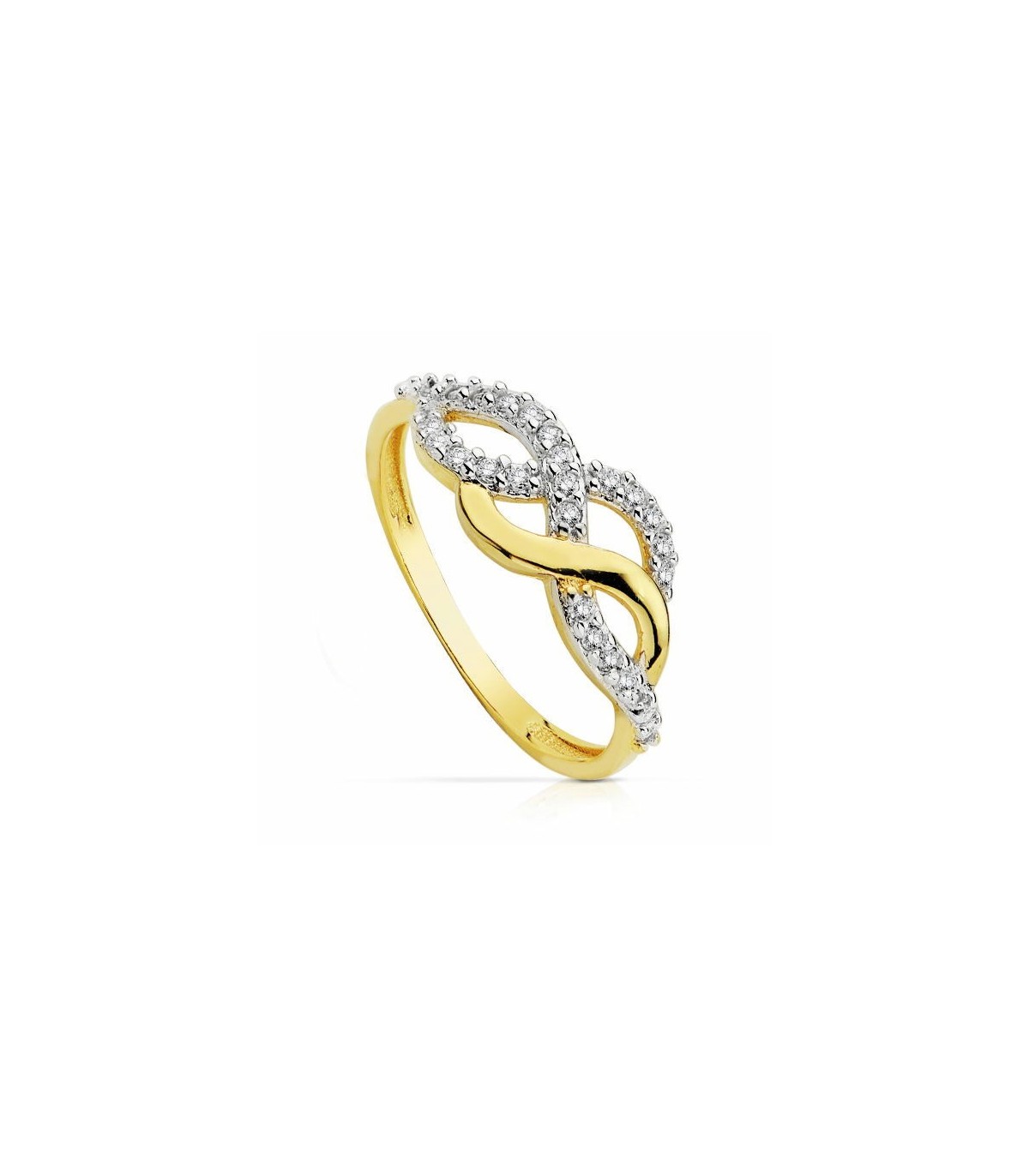 Anillo para mujer. Fabricado en oro biclor 18 ktes. Modelo ondas. Acabado brillo. Piedras circonitas. Talla 15.