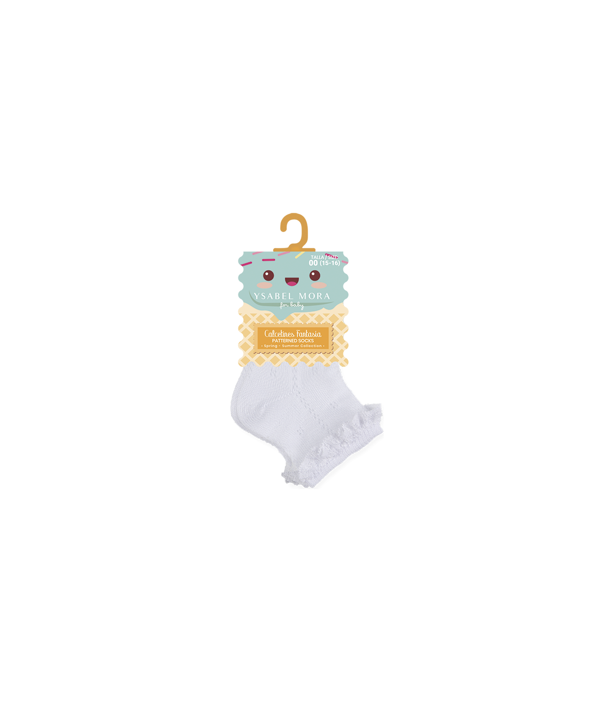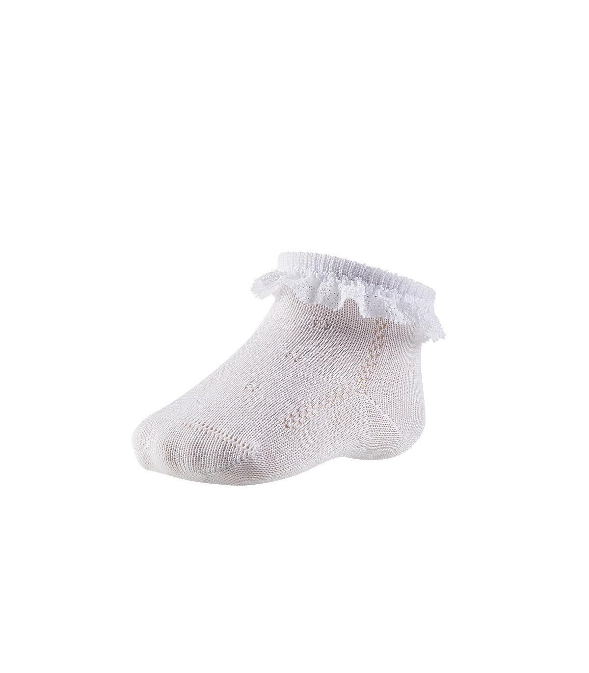 Mima los pies de tu bebé con nuestros calcetines tobilleros calados decorados con blonda.