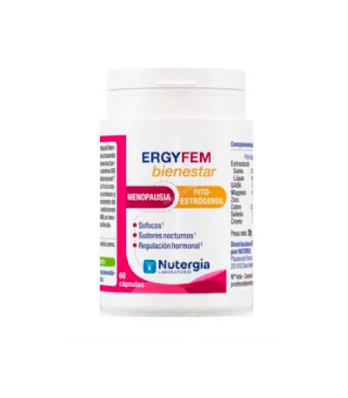 Extractos de semillas de soja garantizadas sin Organismos Genéticamente Modificados (O.G.M.), de salvia y de lúpulo, carbonatos de calcio y de magnesio, lithotamno, gluconato de zinc, selenita de sodio, cloruro de cromo