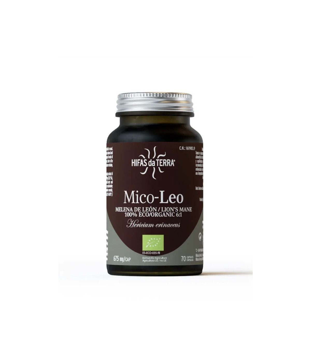 Formato (envase libre de parabenos): 70 cápsulas (100 % vegetales) de 495 mg Ingredientes (solo setas ecológicas): extracto puro ecológico estandarizado y libre de maltodextrinas de Melena de león.