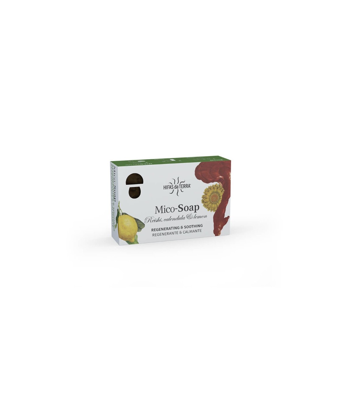 Mico-Soap – Regenerante y calmantees un jabón artesano y terapéutico que contiene el hongo Ganoderma lucidum y caléndula, que ayudan a recuperar la piel después de procesos complejos y diversas agresiones a la dermis.