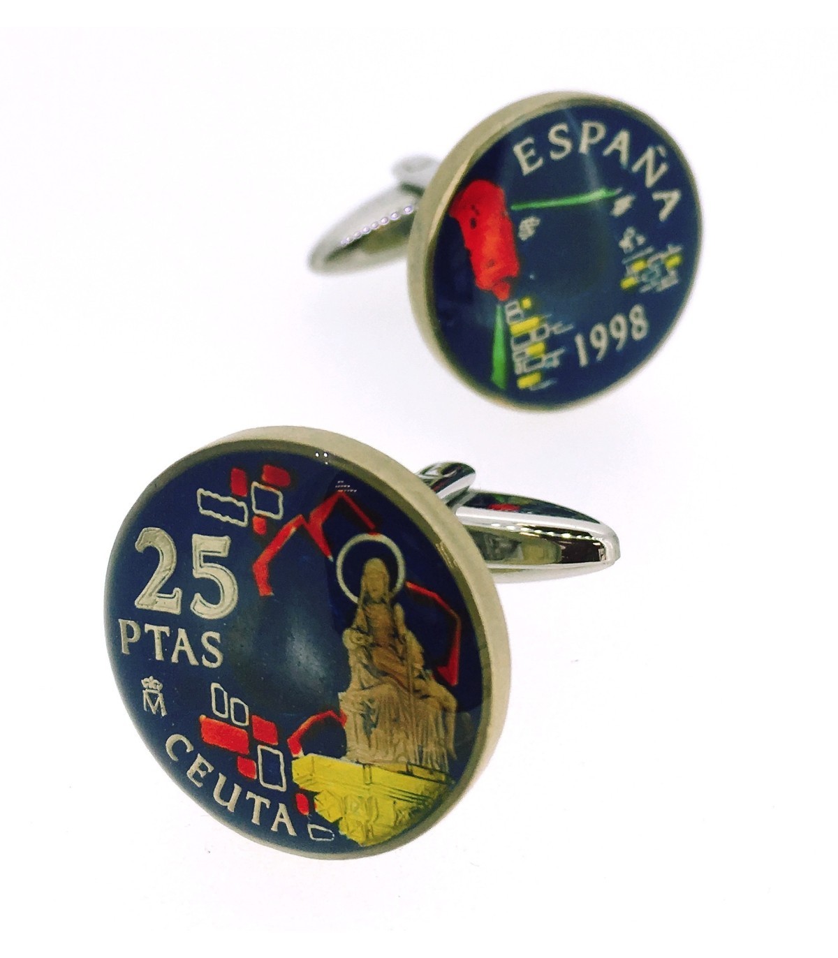 Gemelos Camisa Moneda de 25 Pesetas Homenaje a Ceuta