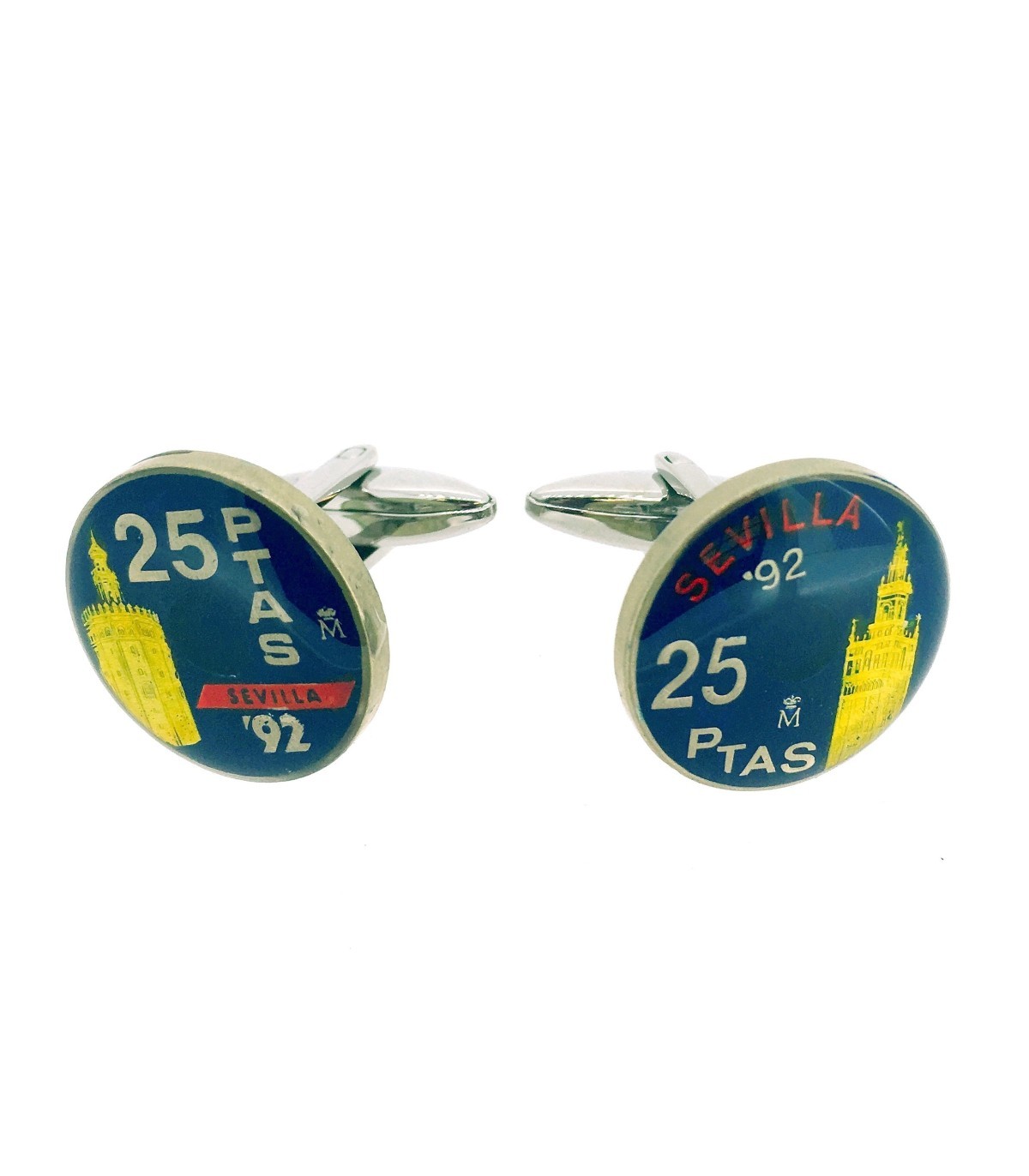 Gemelos Camisa Moneda de 25 Pesetas Homenaje a Sevilla