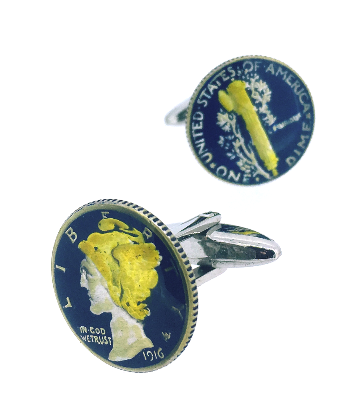 <p>Gemelos de Camisa realizados a partir de una moneda One Dime Americana de 1916, se le ha pintado a mano y se le ha aplicado gota de resina para darle consitencia haciendo de estos gemelos una joya unica y exclusiva.</p>