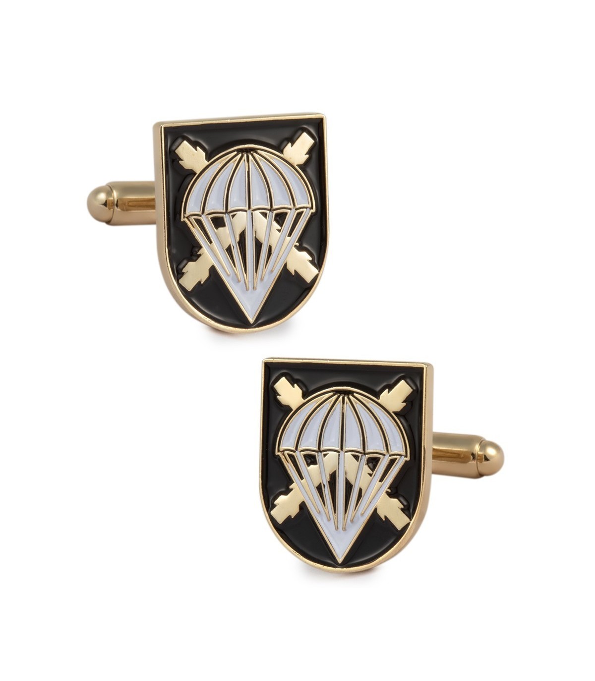 <p>Excelentes gemelos para comprar en nuestra tienda online que representan el escudo de la brigada paracaidista BRIPAC con tonos dorados blancos y negros.</p>