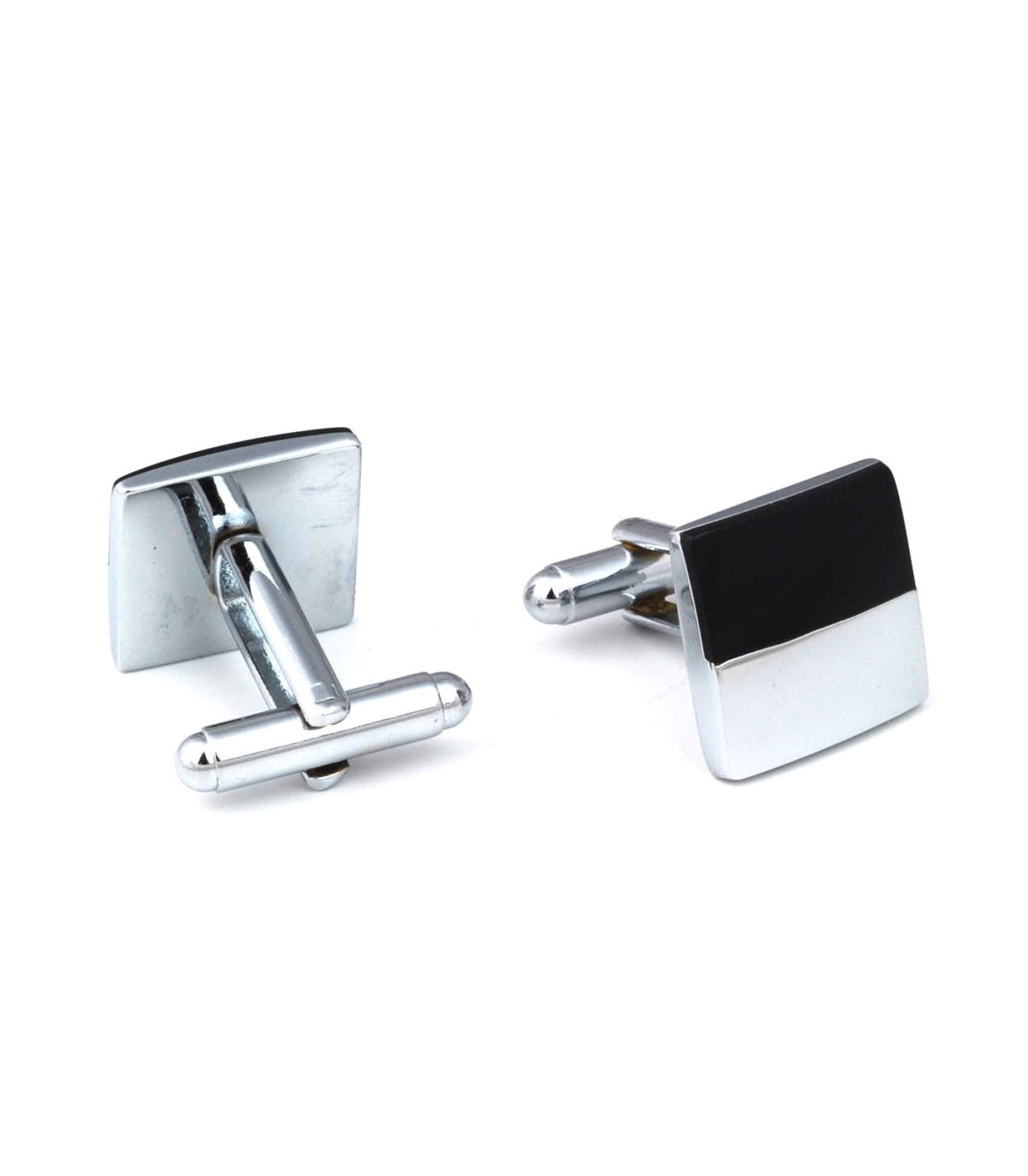 <p style= text-align: justify; >Gemelos elegantes de ceremonia divididos en una parte acero y otra negro.</p>