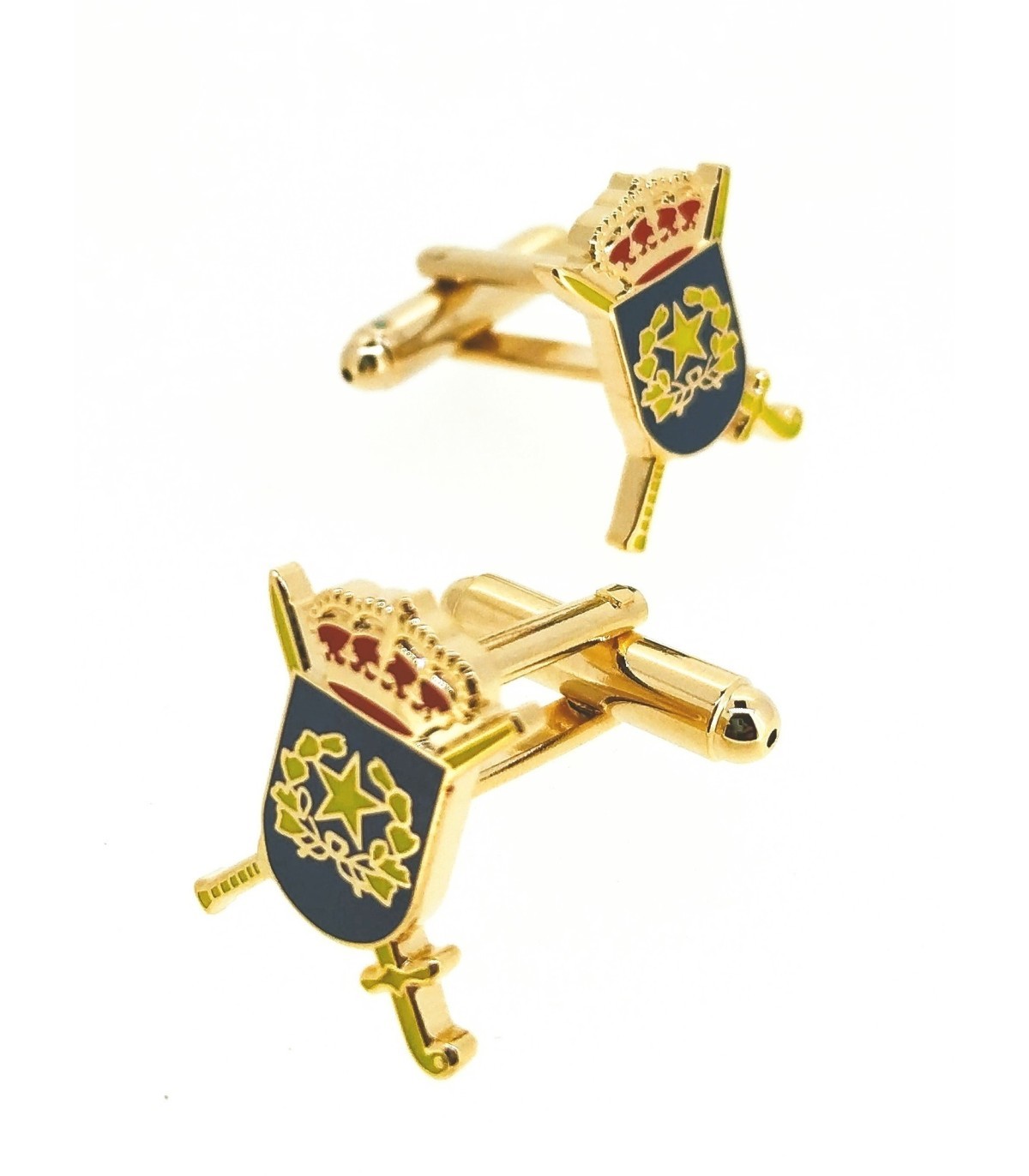 <p>Gemelolandia presenta estos gemelos con el emblema de la escuela del Estado Mayor, ideal para complementar tu look.</p>