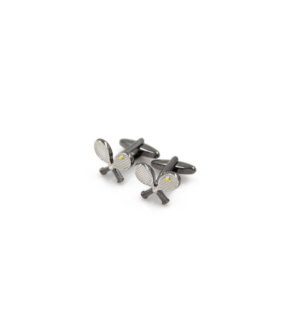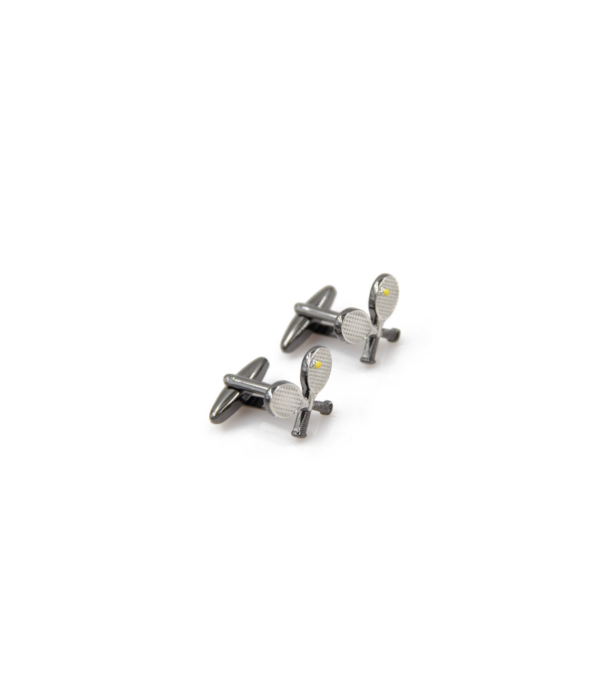 <p>Excelentes gemelos para comprar en nuestra tienda online que representan dos raquetas cruzadas en tonos acero negro y plateada con una pelota de tenis en color amarillo.</p>