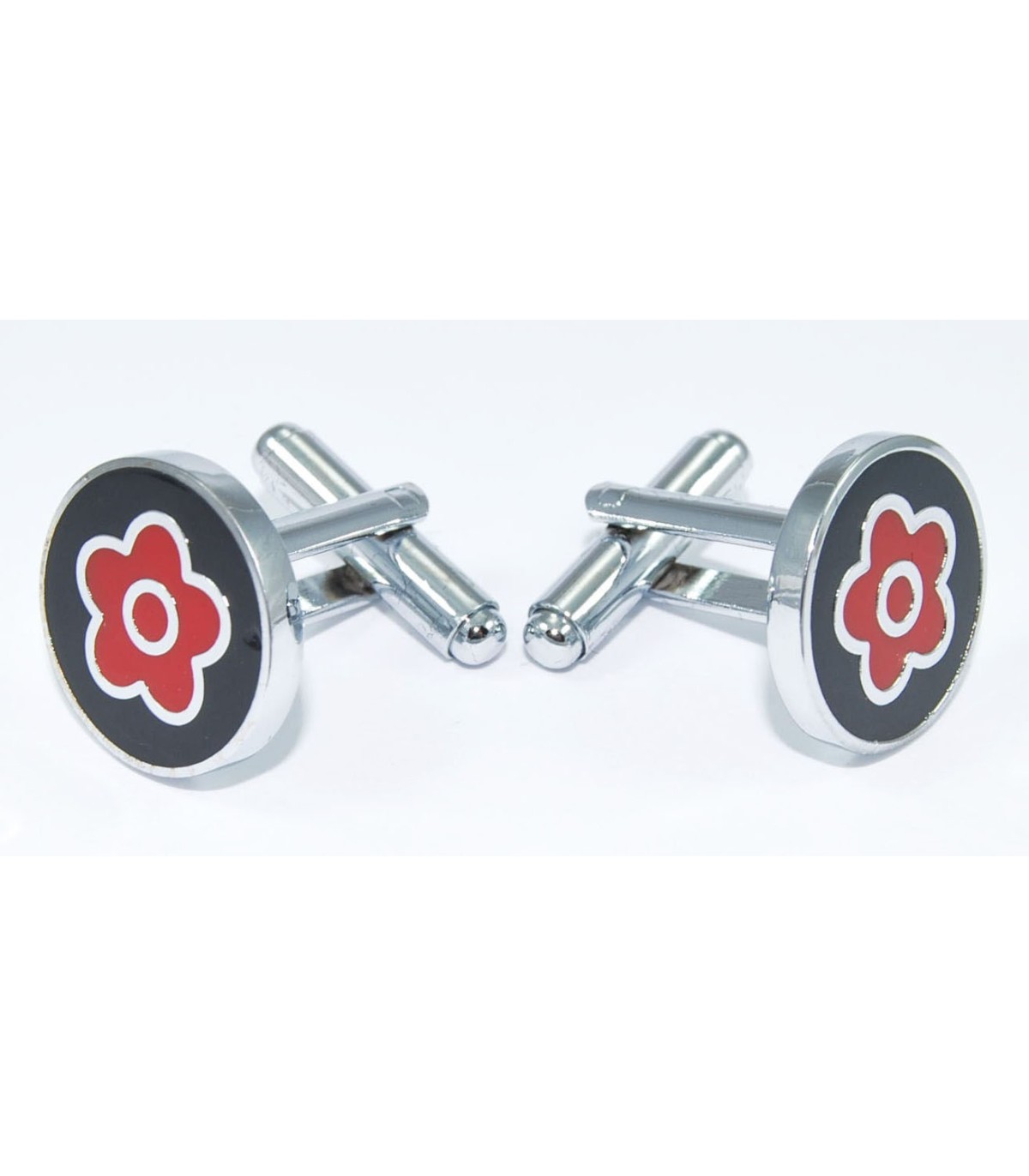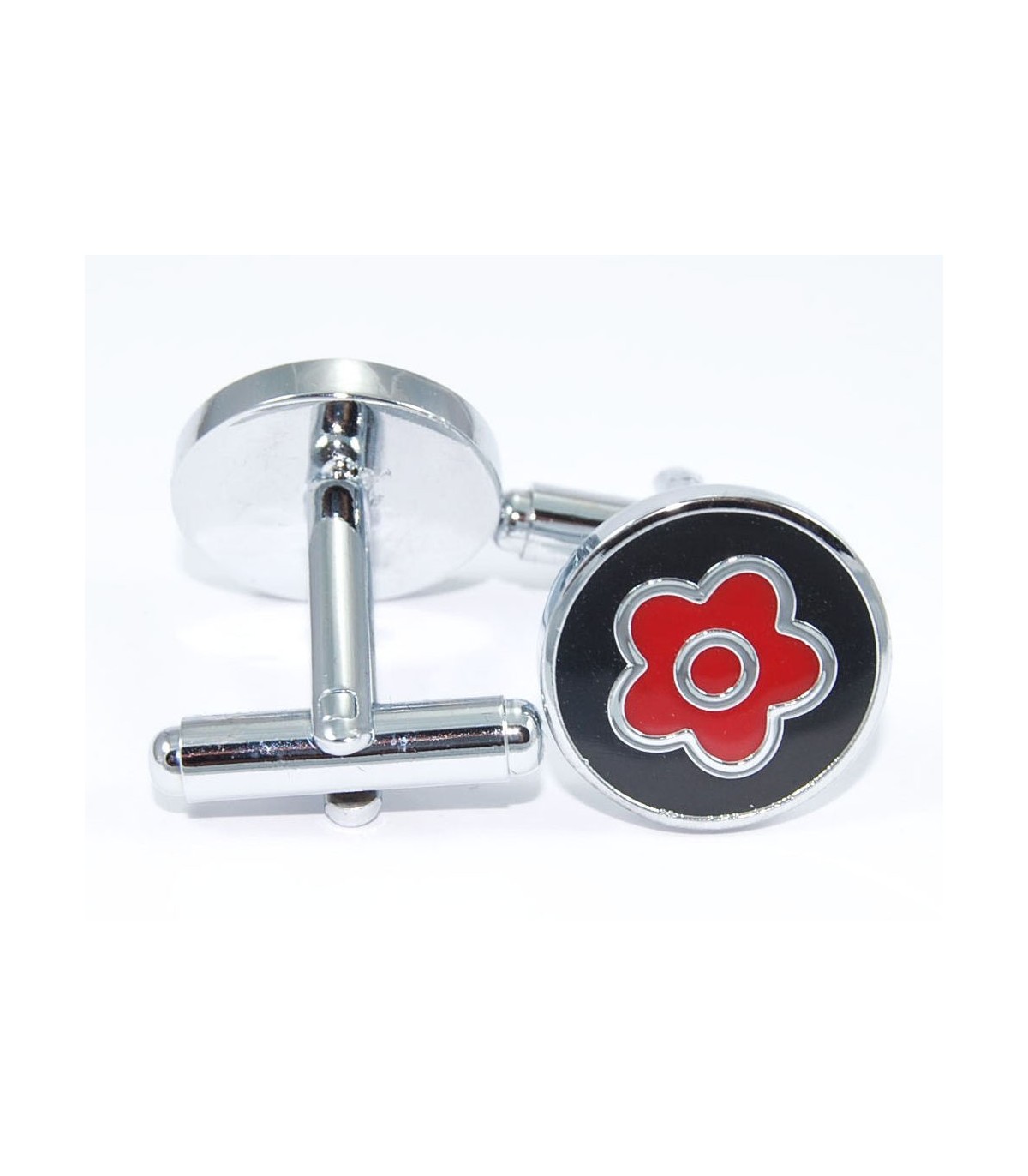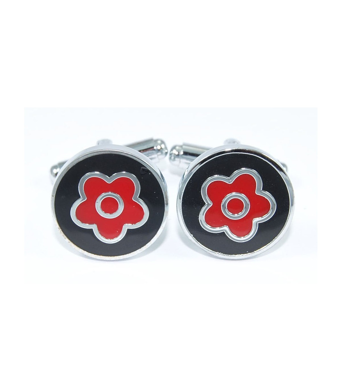 <p><strong>Gemelos Flor Roja </strong>de Acero Rodiado, Esmaltado y Antialérgico. Tamaño 16 mm. </p>