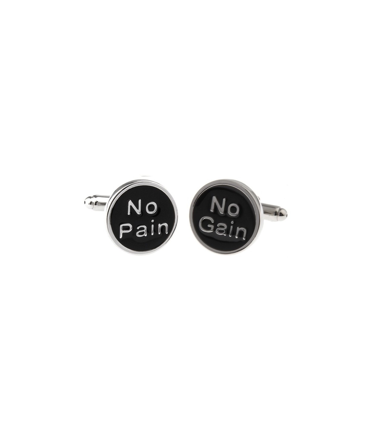 <p style= text-align: justify; ><strong>Gemelos No Pain No Gain</strong>. <strong>Gemelos</strong> de latón esmaltado con acero rodiado antialérgico. Estuche Exclusivo incluido. Tamaño de 18x18mm.</p>