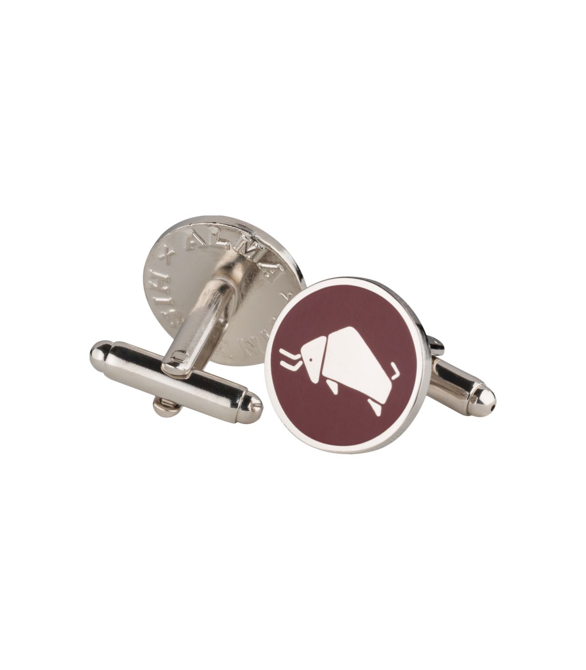<p>Gemelos con el símbolo del bisonte de las cuevas de altamira en esmalte rojo y plateado.</p>