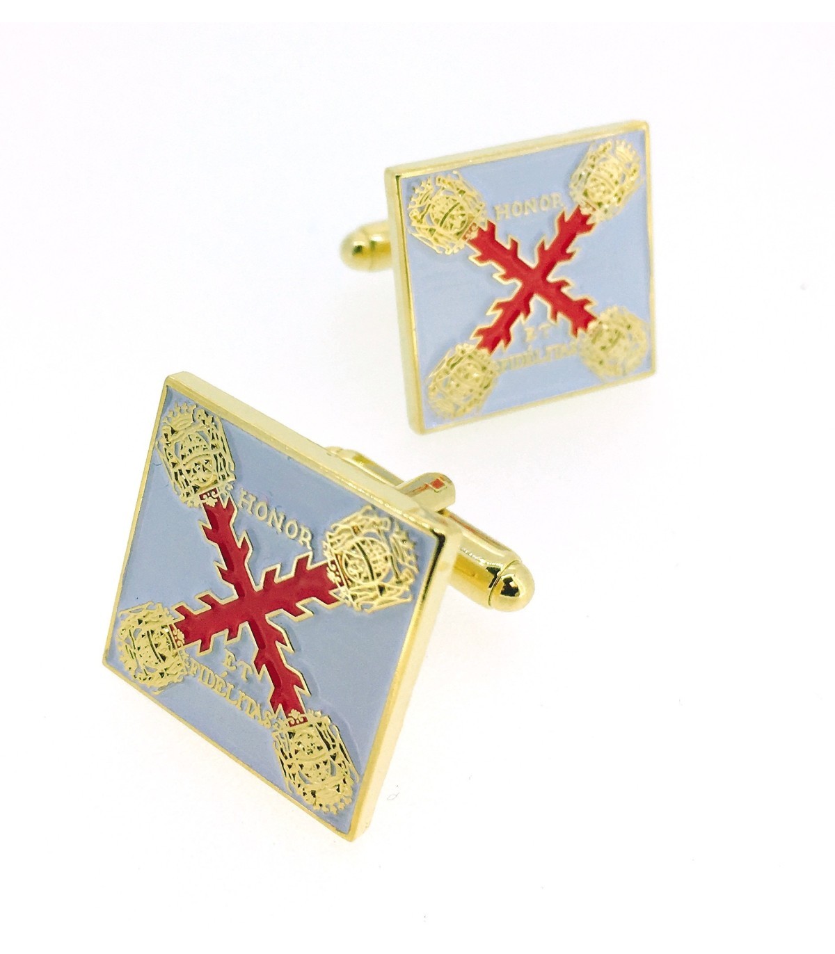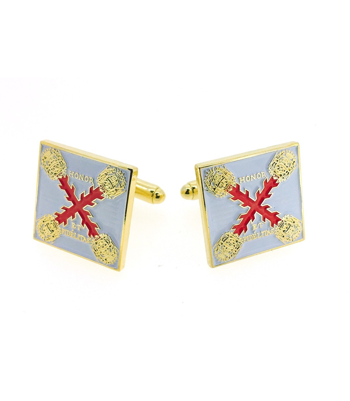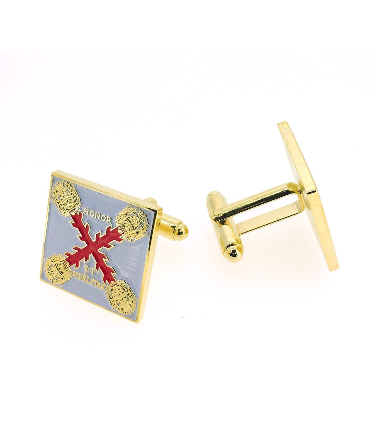 <p><strong></strong>Gemelos de camisa que representa la enseña con la el Regimiento,que formó parte del cuerpo expedicionario al mando del comandante Don Bernardo de Galvez, apoy&oacu