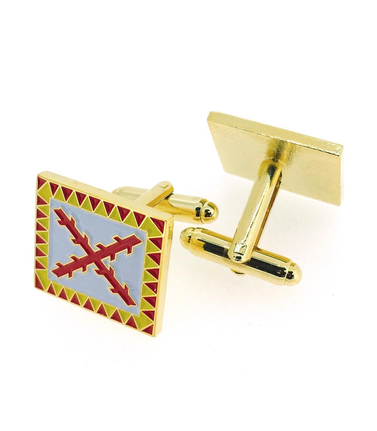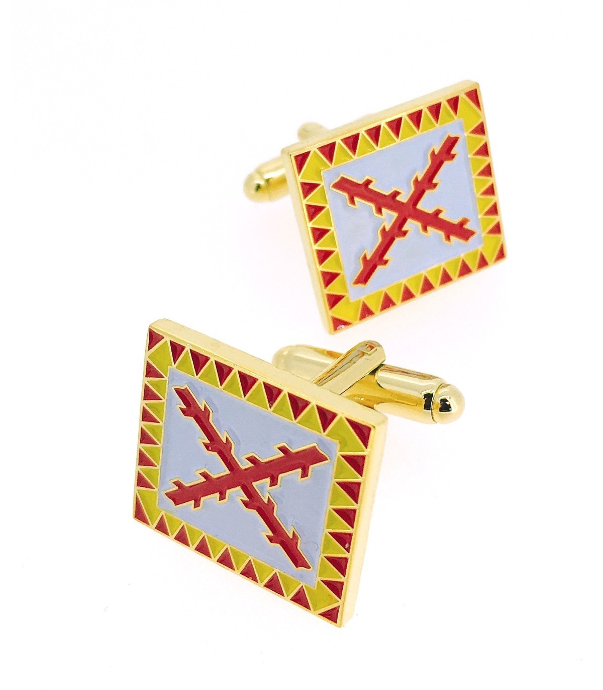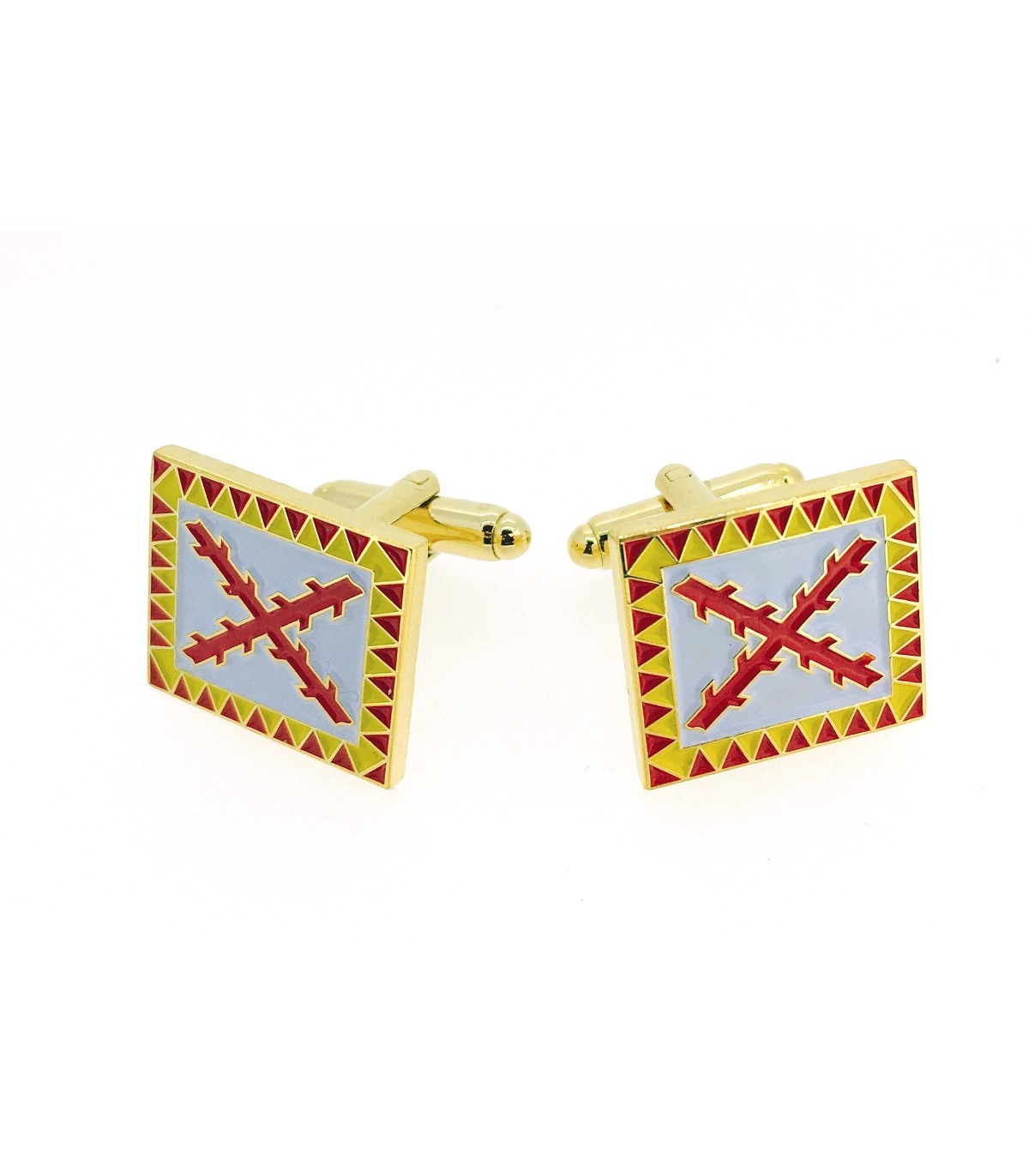 <p><strong></strong>Gemelos de camisa que representa la enseña utilizada por los destacamentos de infanteria, instaurado por SM el Rey Felipe II en 1585 fue utilizada hasta 1700. Estas banderas son utilizadas hasta el reinad
