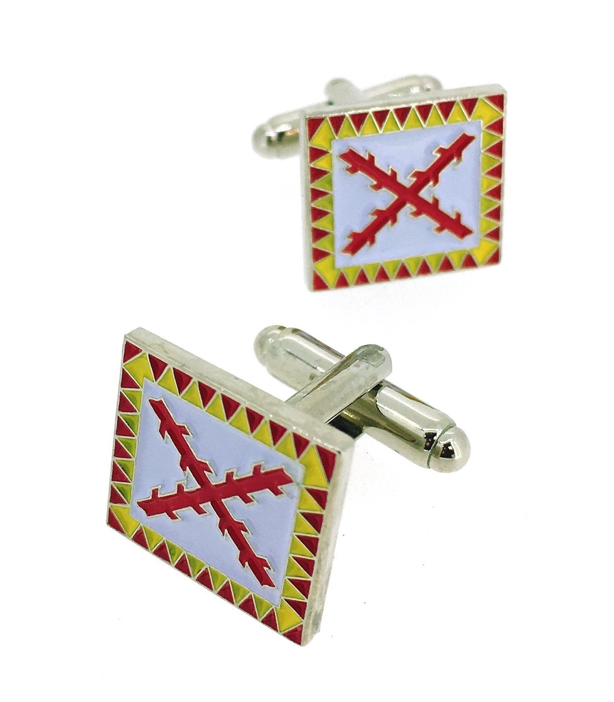 <p><strong>Gemelolandia.com - Gemelos para Camisa Bandera del Tercio de Infantería Plateado 1585 - 1700, Tamaño perfecto 15mm x 15 mm. Gemelos realizados en latón y baño de rodio con esmalte en colores blancos , rojos, amarillos y plateado.</strong></p>