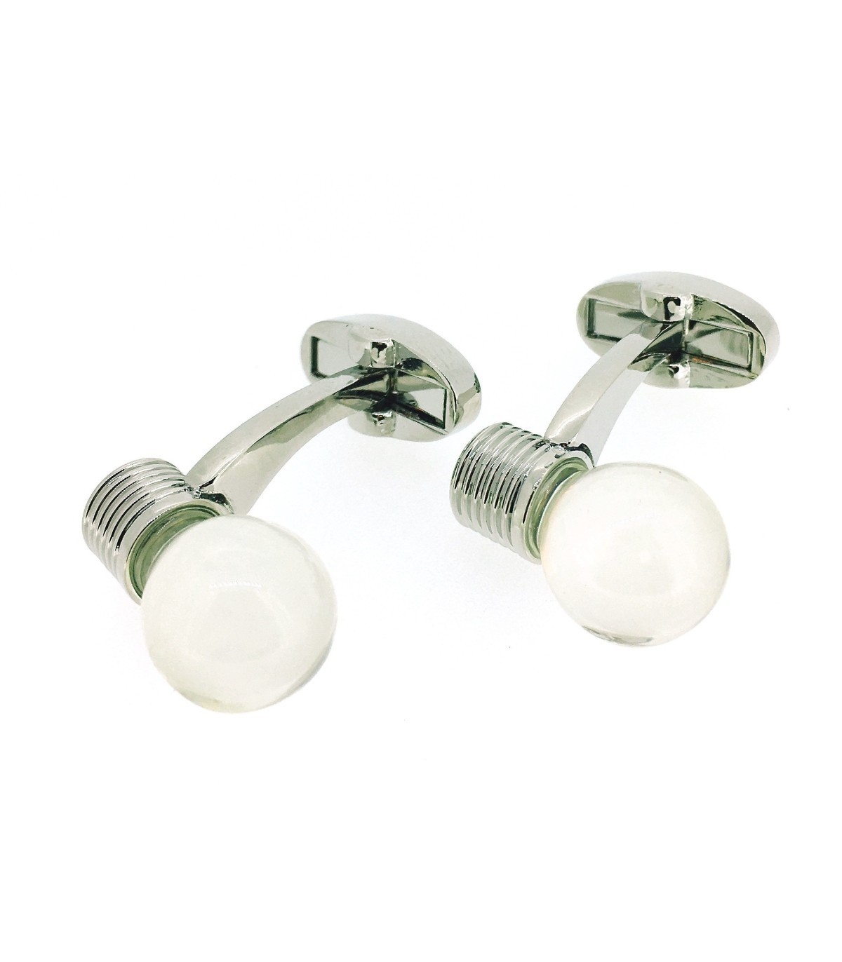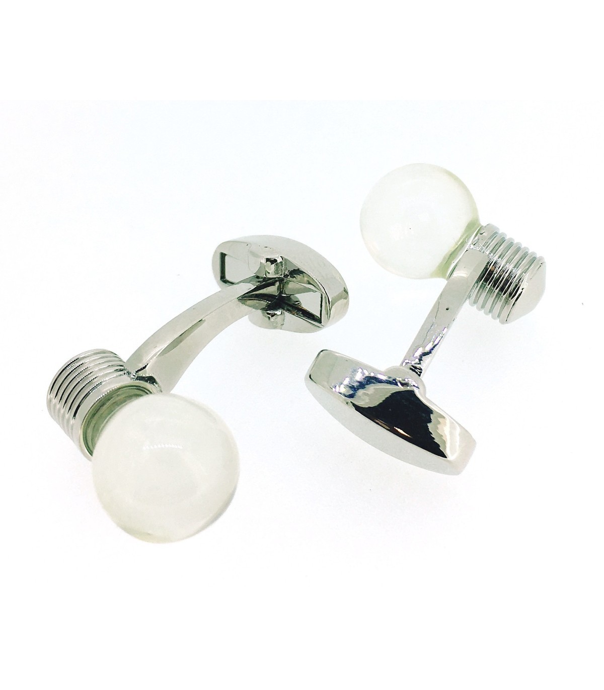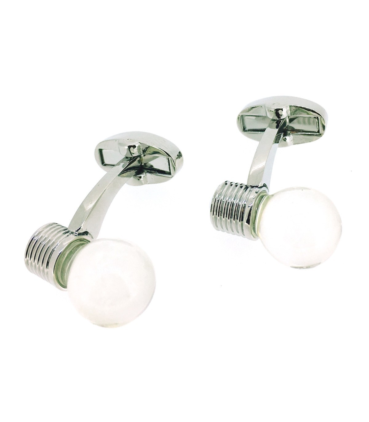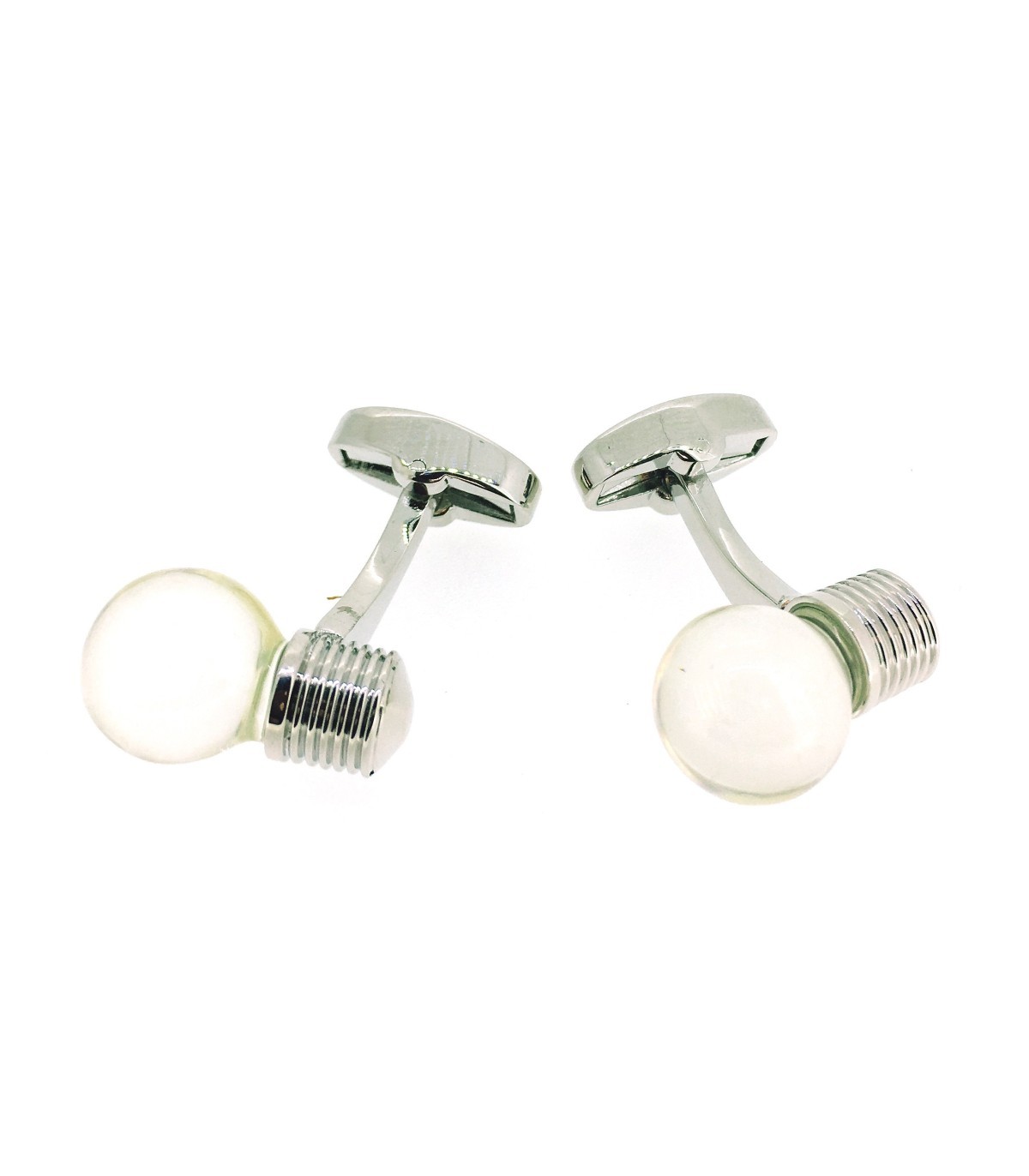 <p style= text-align: justify; ><strong></strong>Gemelos de camisa fabricados en laton reluciente de color plateado que representa una bombilla en tres dimensiones.</p>