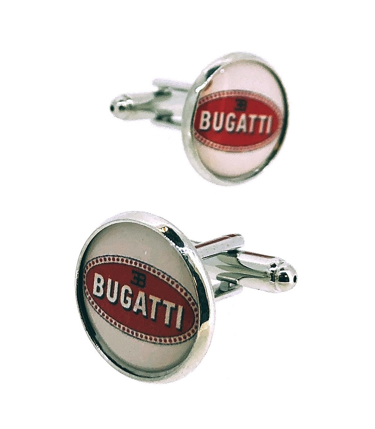 <p>Gemelos para Camisa que lleva la imagen de la marca de coches italofrancesa Bugatti en color blanco y rojo.</p>