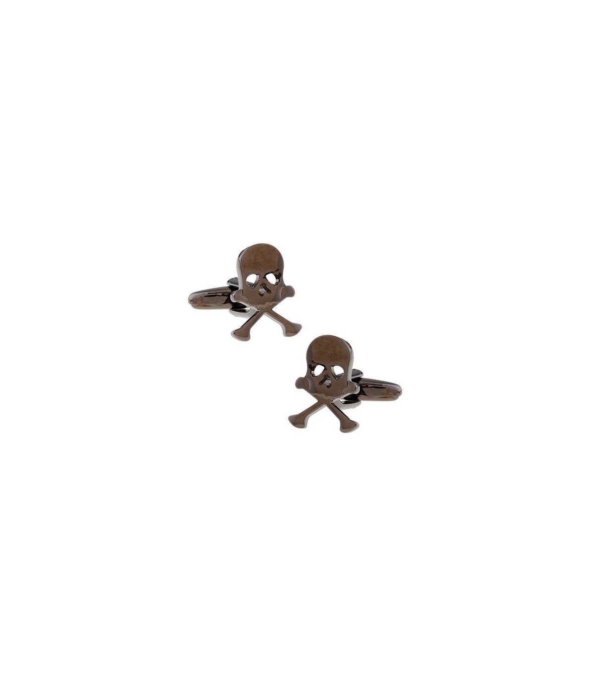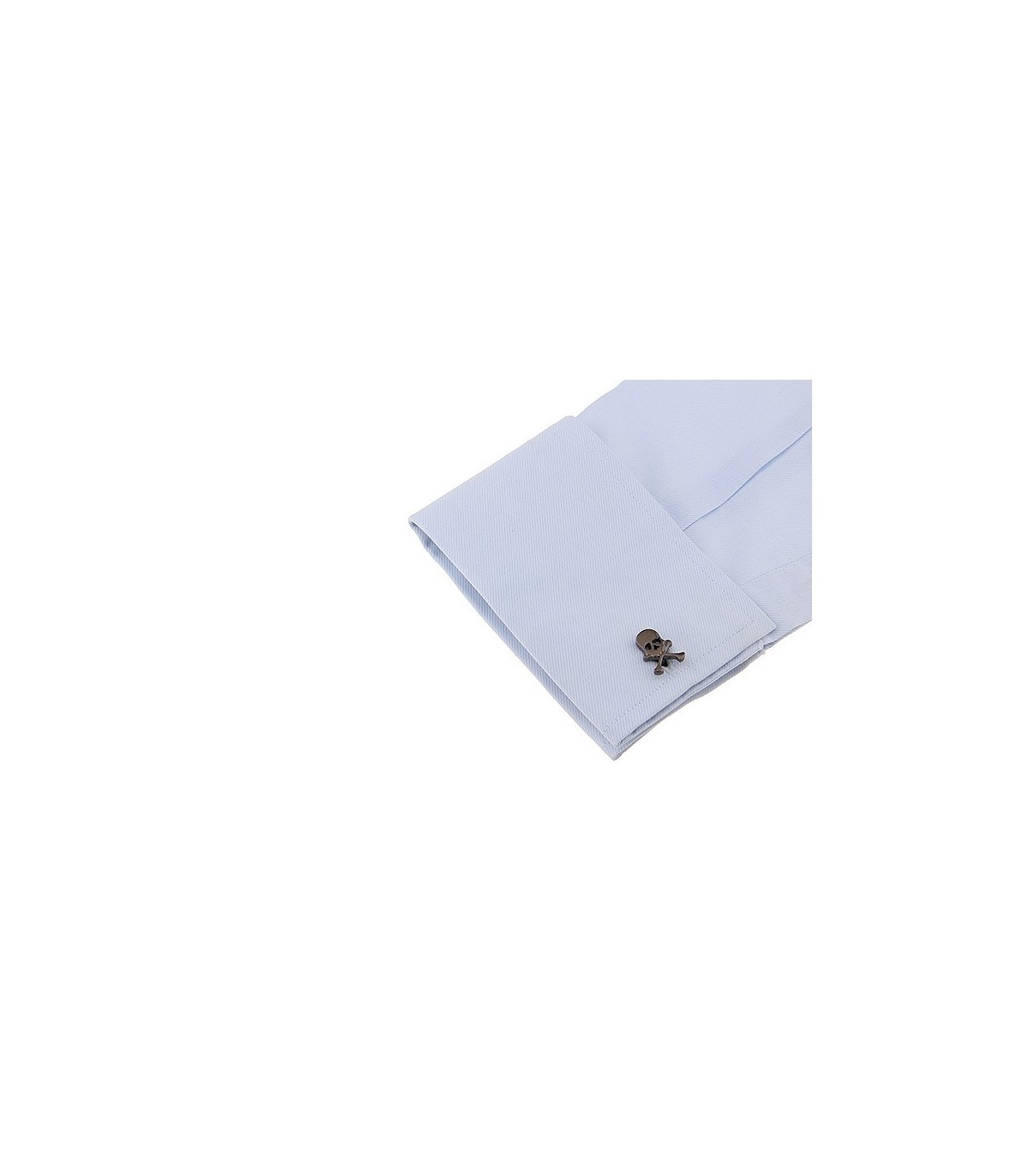 <p>Gemelos para Camisa que representan la forma de dos tibias y una calavera en color plateado.</p>