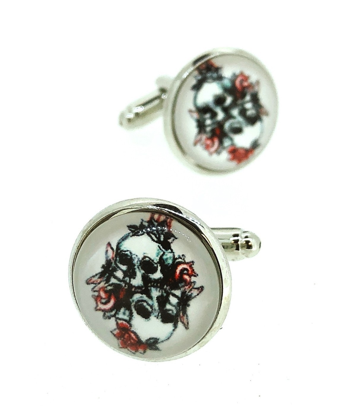 <p>Gemelos para Camisa que lleva la imagen de unas calaveras muy elegantes</p>