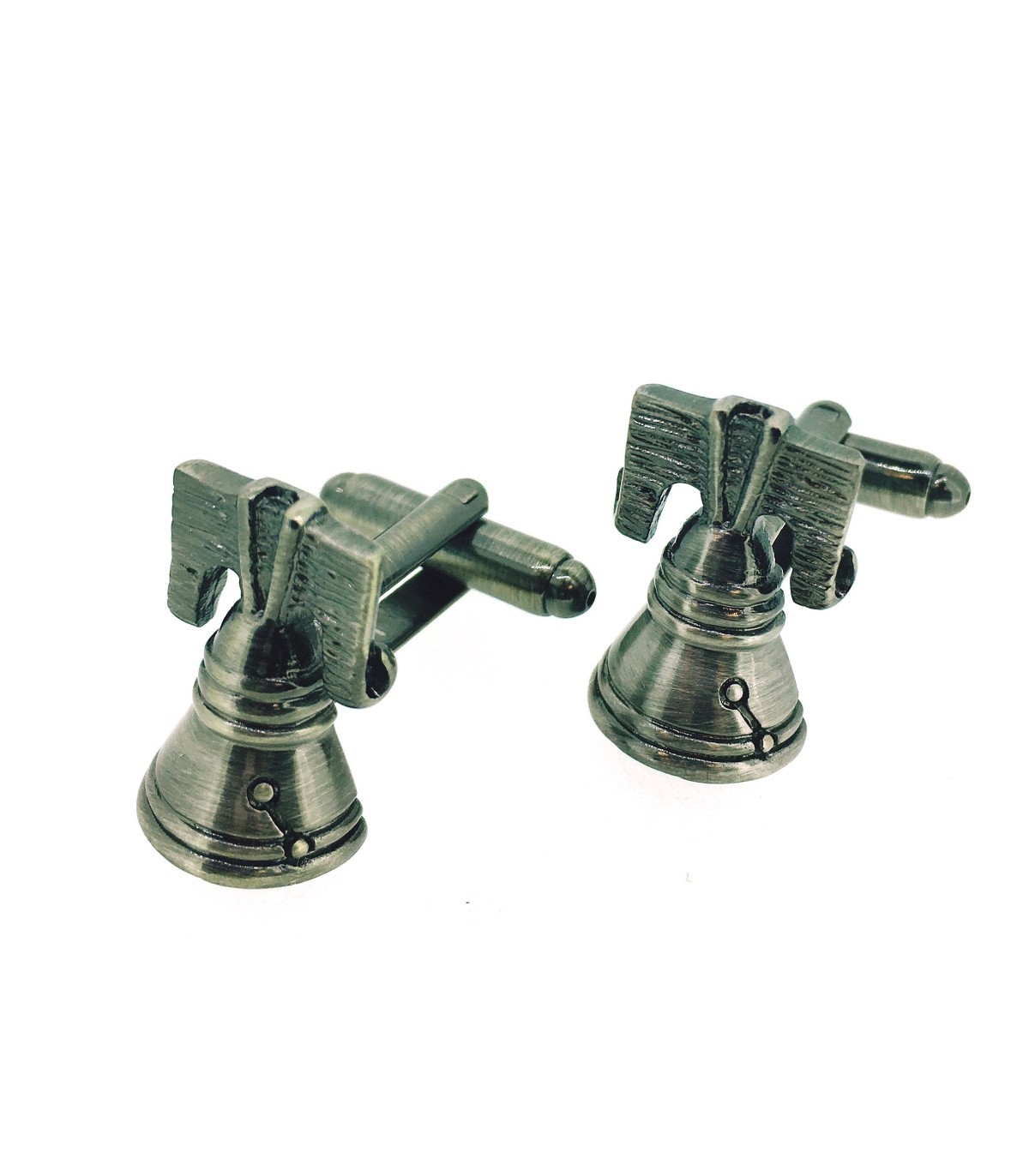 <p><strong></strong>Gemelos de camisa que representan una campana en tres dimensiones en color acero negro.</p>