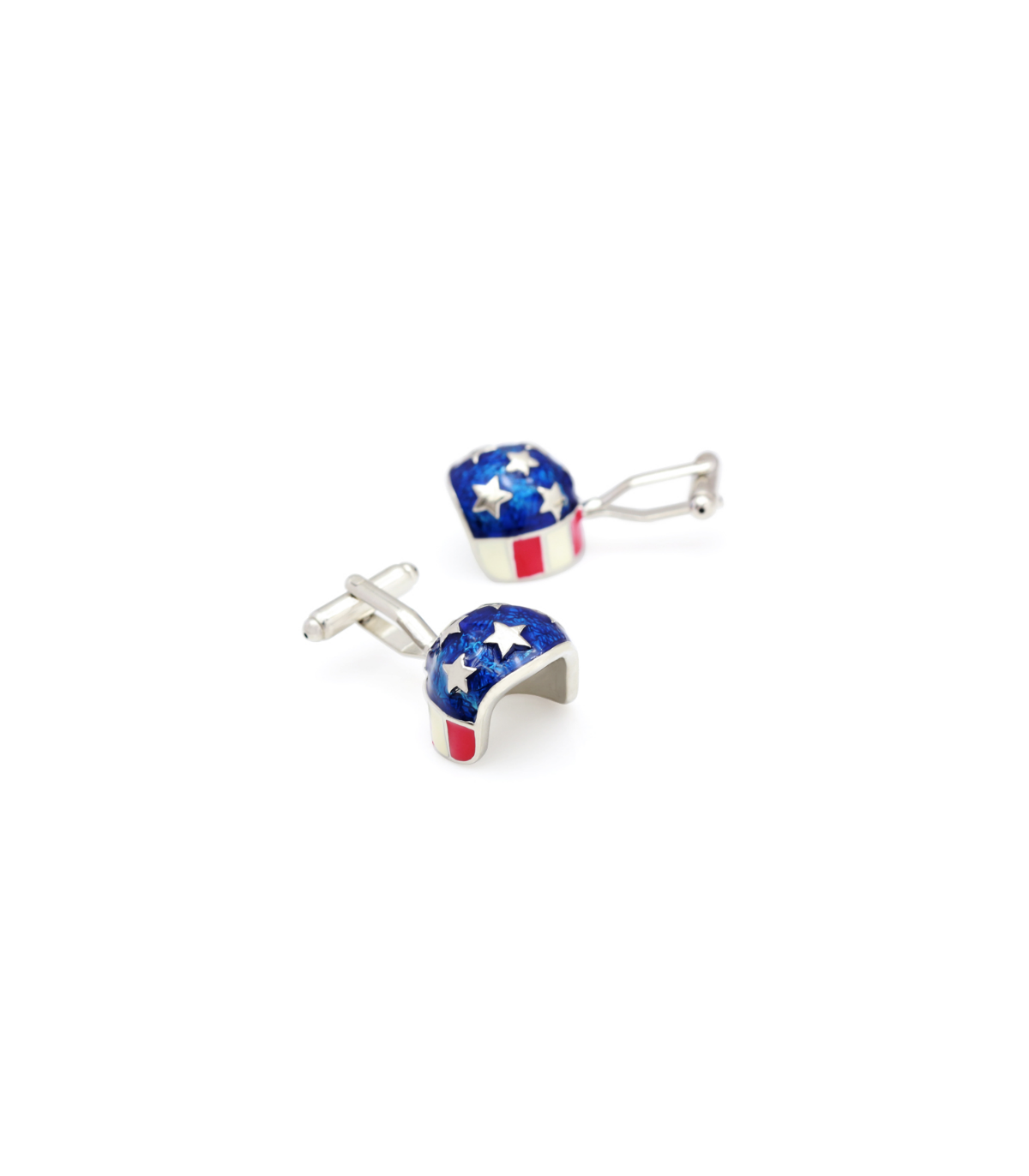 <p style= text-align: justify; ><strong></strong>Gemelos de camisa que representa un casco con los colores de la bandera americana . Este gemelo está fabricado en latón y esmalte.</p>