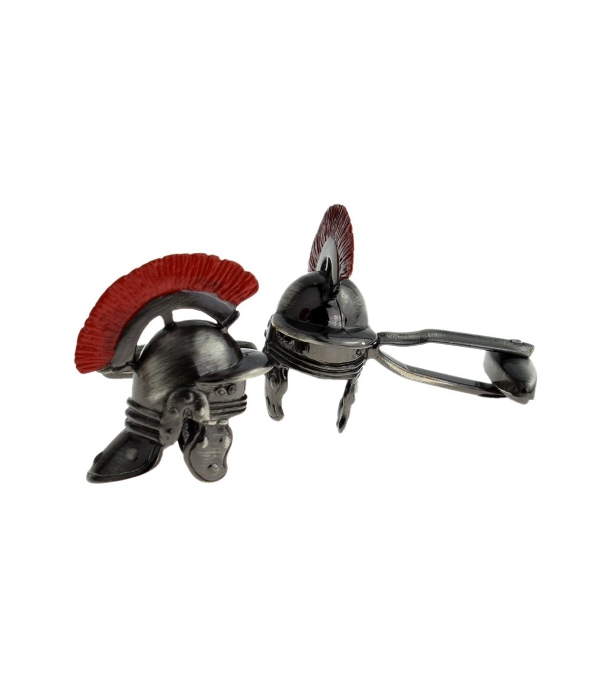 <p>Gemelolandia presenta estos gemelos que representan un casco romano en color acero, con la cresta del casco en color rojo.</p>