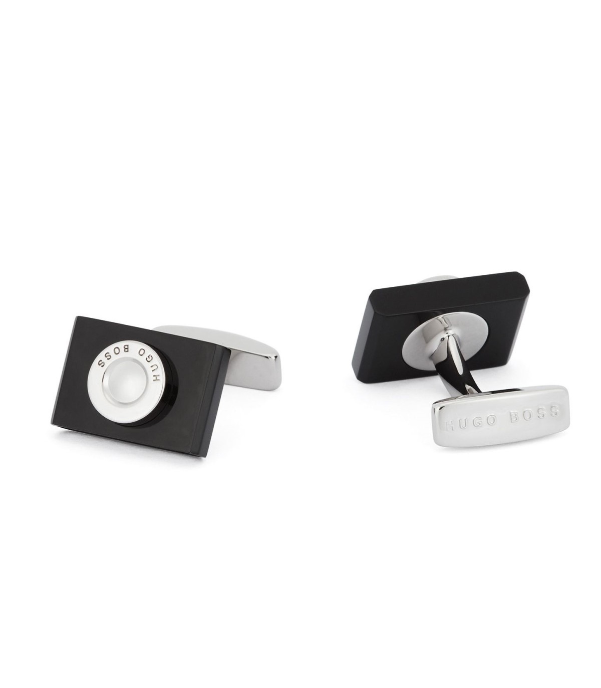 <p>▶ Unos sencillos pero elegantes gemelos para camisa de BOSS fabricados en metal pulido a mano con cierre abatible recto con el anagrama de Hugo Boss.</p>