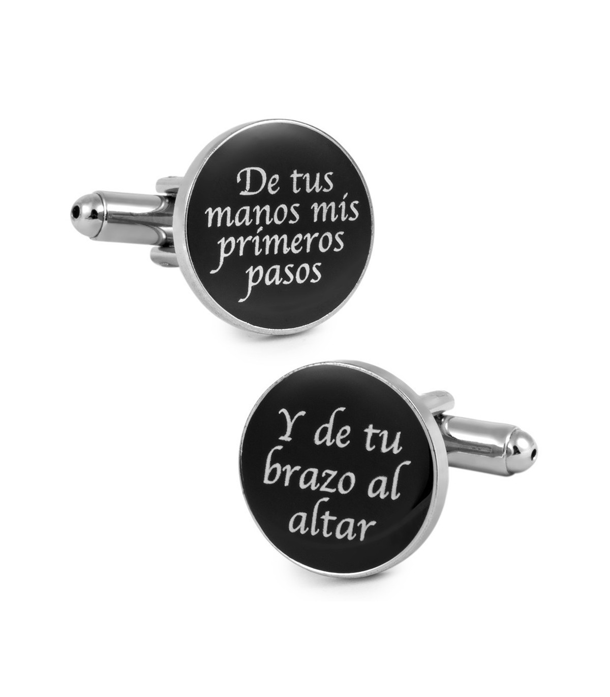 <p>Gemelos para Camisa que llevan una frase muy bonita: De tu mano mis primeros pasos y de tu brazo al altar, tu niña</p>