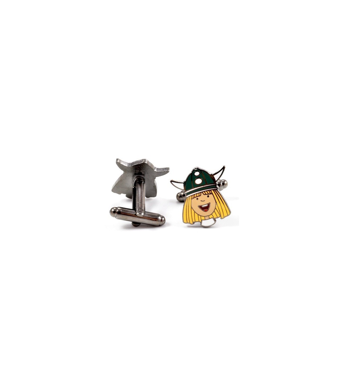 <p style= text-align: justify; >gemelolandia.com - Gemelos para camisa que representan a Vicky el Vikingo, realizados en acero con baño de rodio y un tamaño de 17 mm</p>