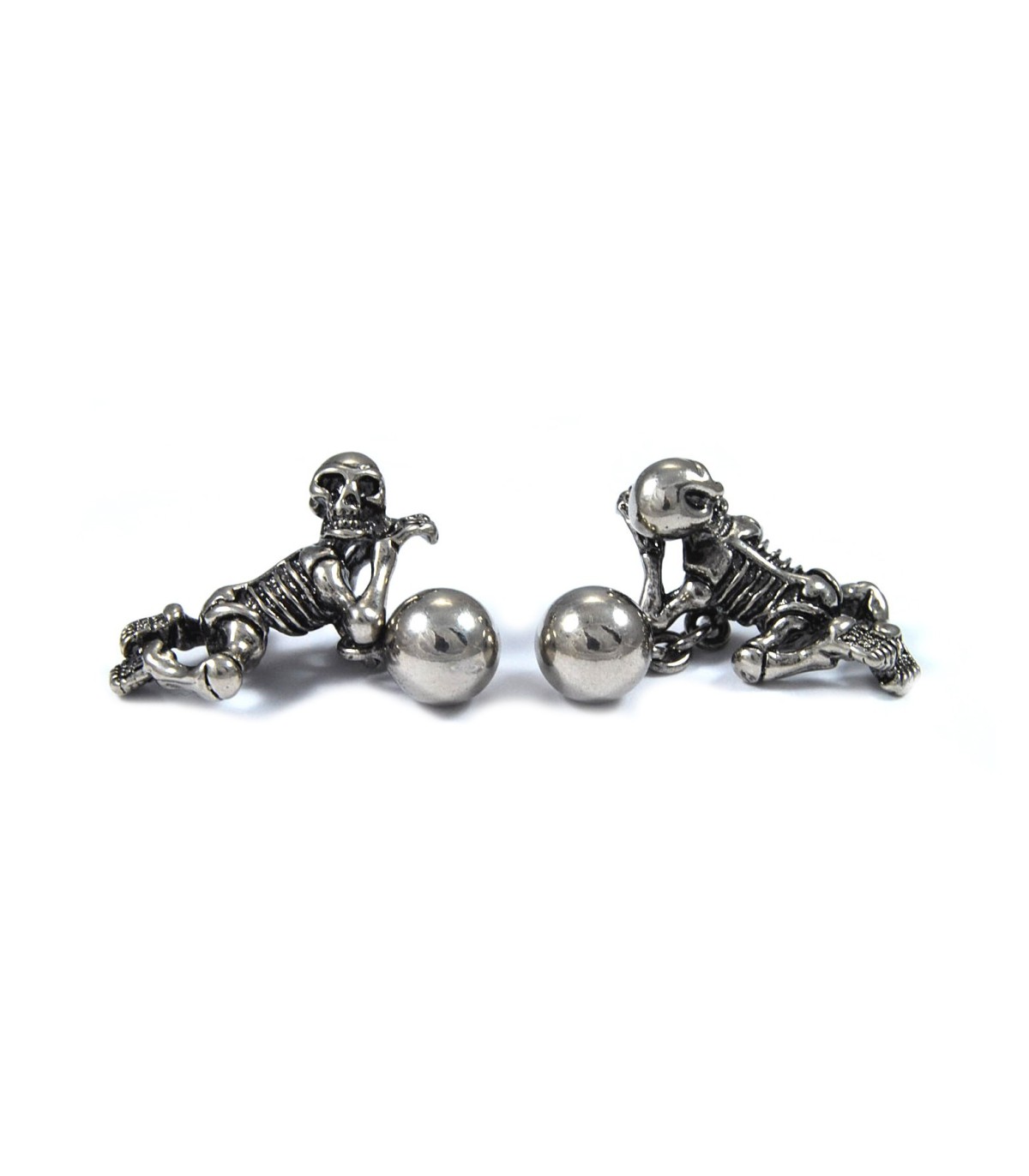 <p>Divertidos Gemelos de Esqueleto tumbado, de acero inoxidable. Tamaño 19 mm</p>