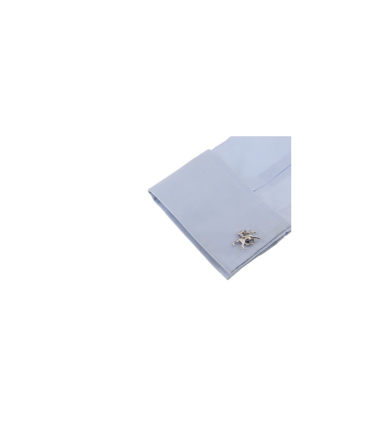 <p>Gemelos para Camisa que representan la forma de un jinete y un caballo de carreras en color plateado.</p>