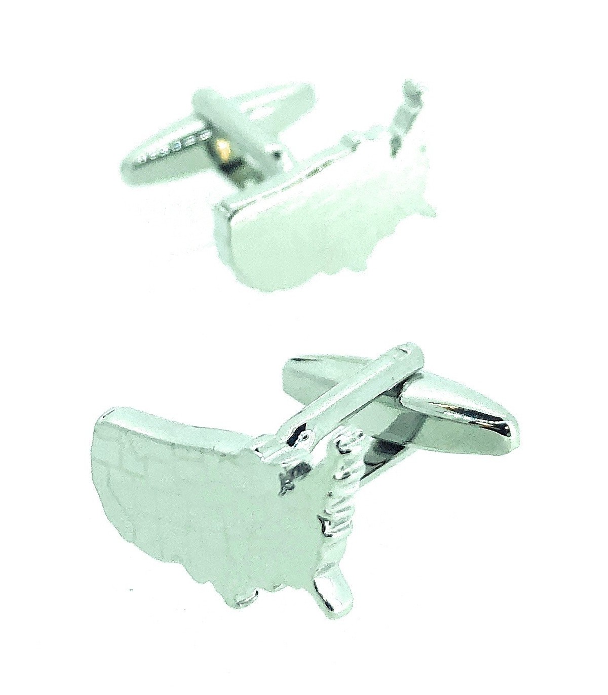 <p>Gemelos para Camisa que son una representación de un mapa de Estados Unidos en color plateado.</p>