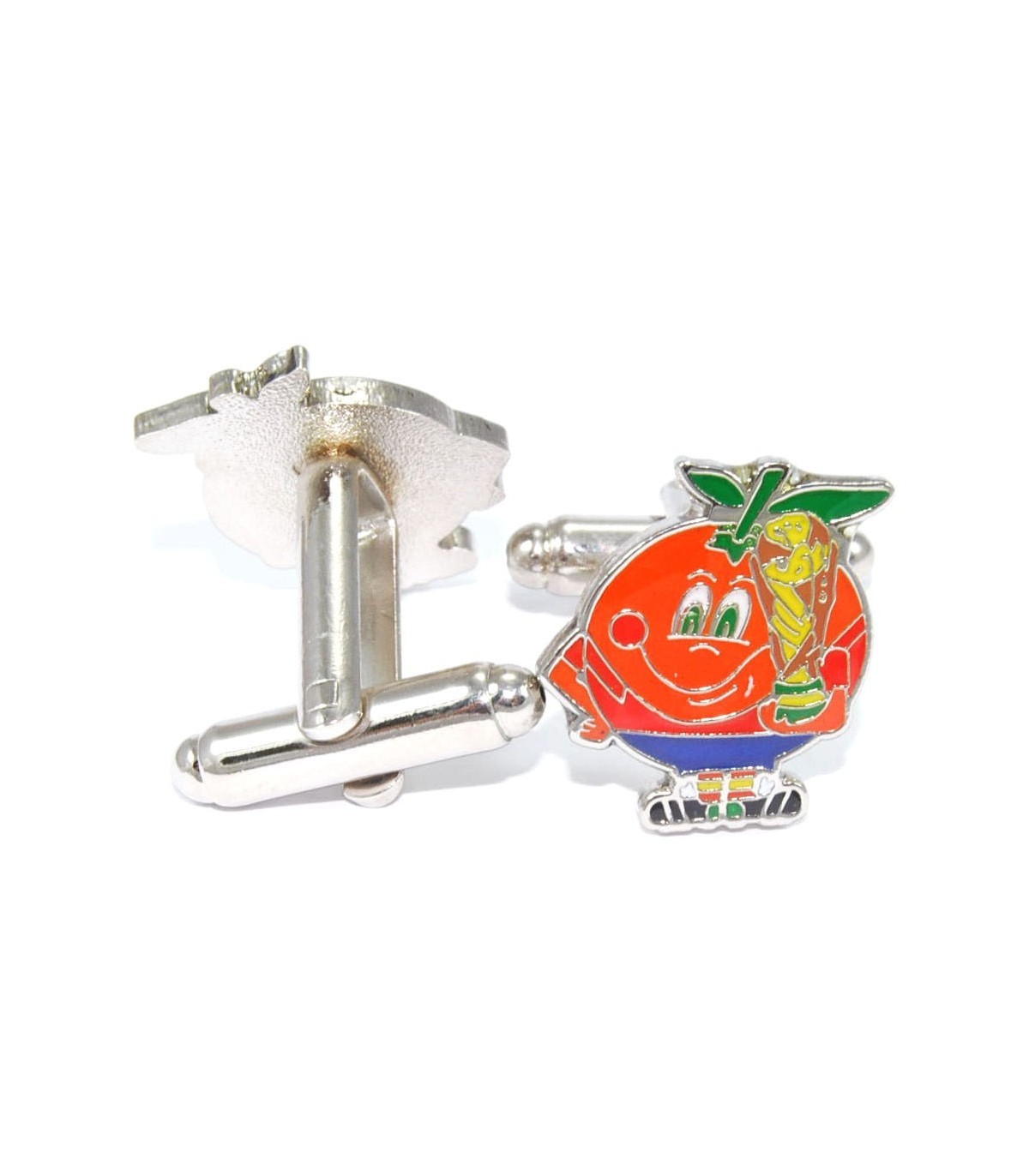 <p style= text-align: justify; >Gemelos de Naranjito. Realizados en Acero con baño de rodio, esmaltados a color y antialérgicos. Tamaño de 16 mm. Ideales</p>