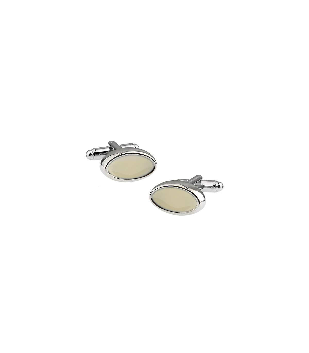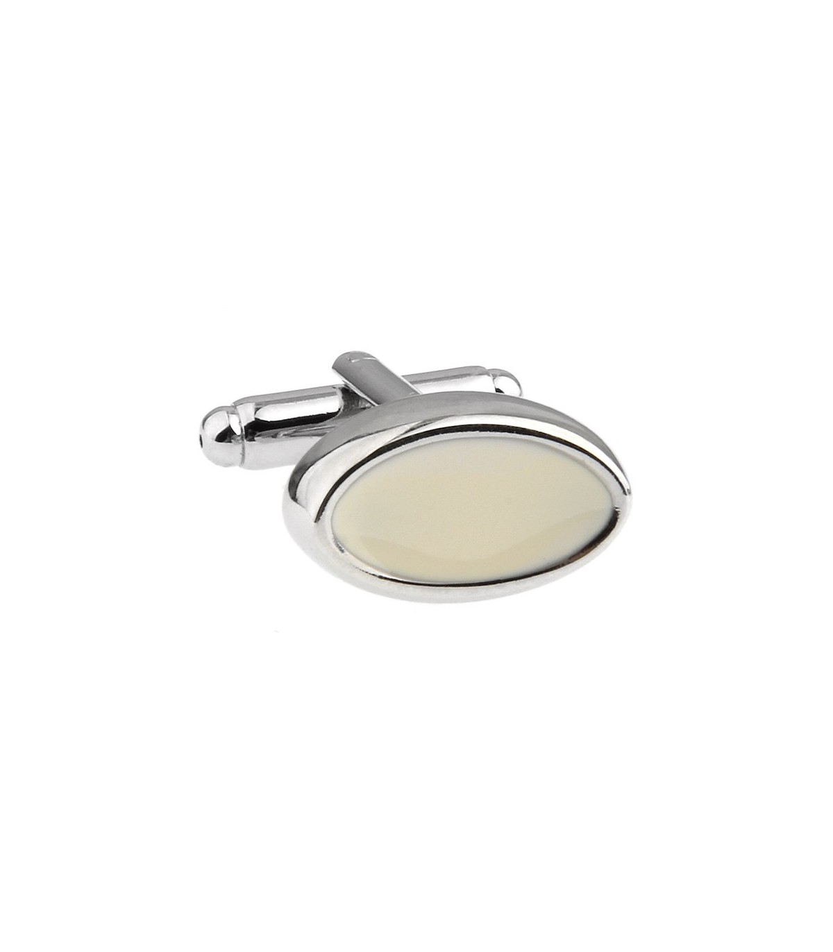 <p><strong></strong>Gemelos de camisa con un diseño en forma oval de color blanco y los bordes del mismo en color plateado. Gemelos de camisa fabricados en latón y esmalte.</p>