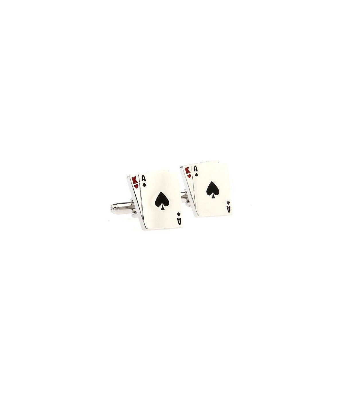 <p> Gemelos para Camisa realizados con la máxima calidad que representan dos cartas de poker en concreto el rey de corazones y as de picas.</p>