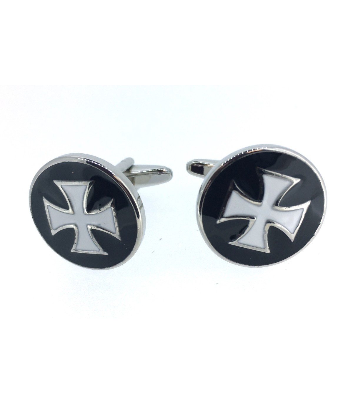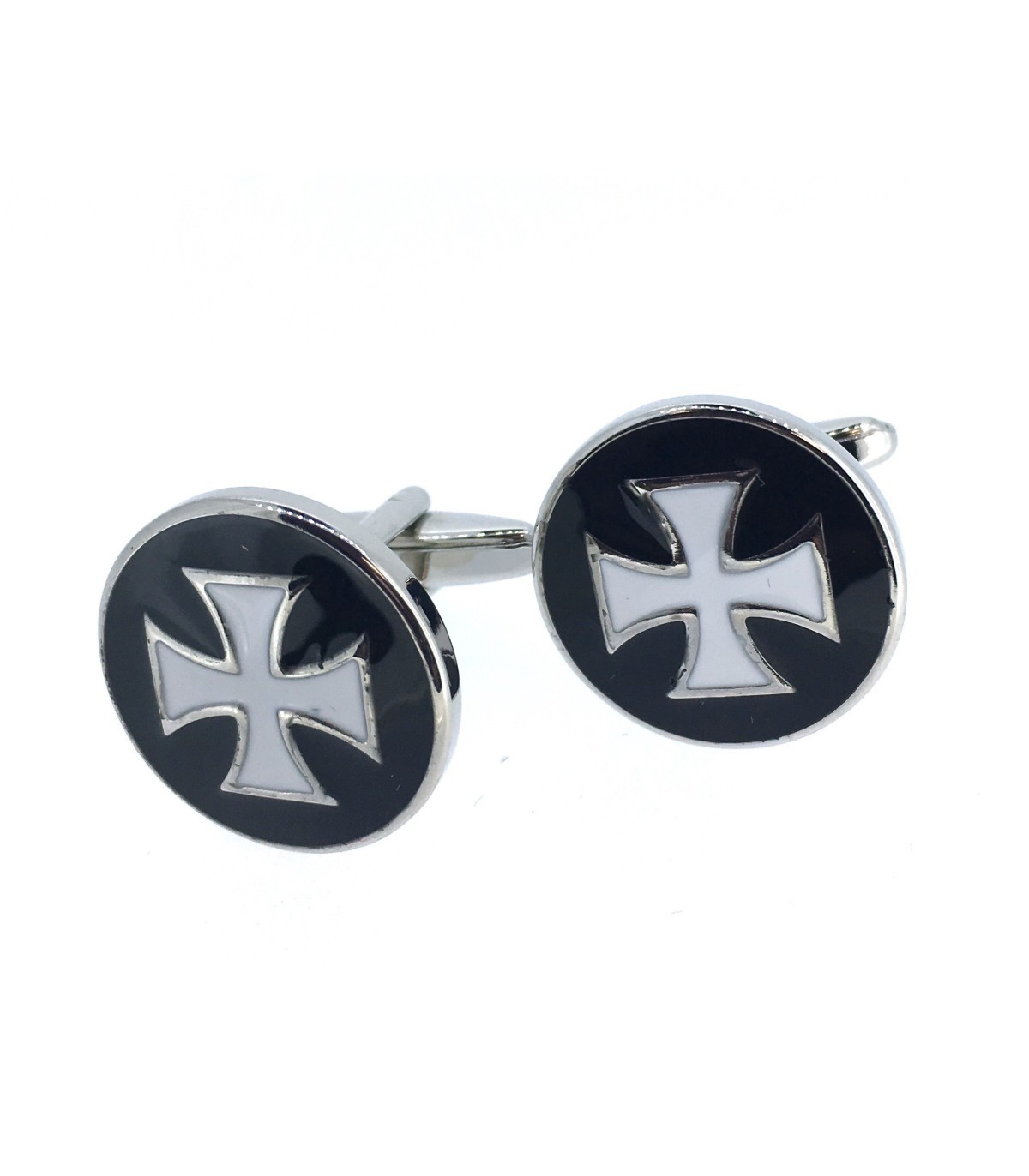<p><strong></strong>Gemelos de camisa que representan un cruz templaria en formato redondo con el fondo en negro y la cruz en blanco.</p>