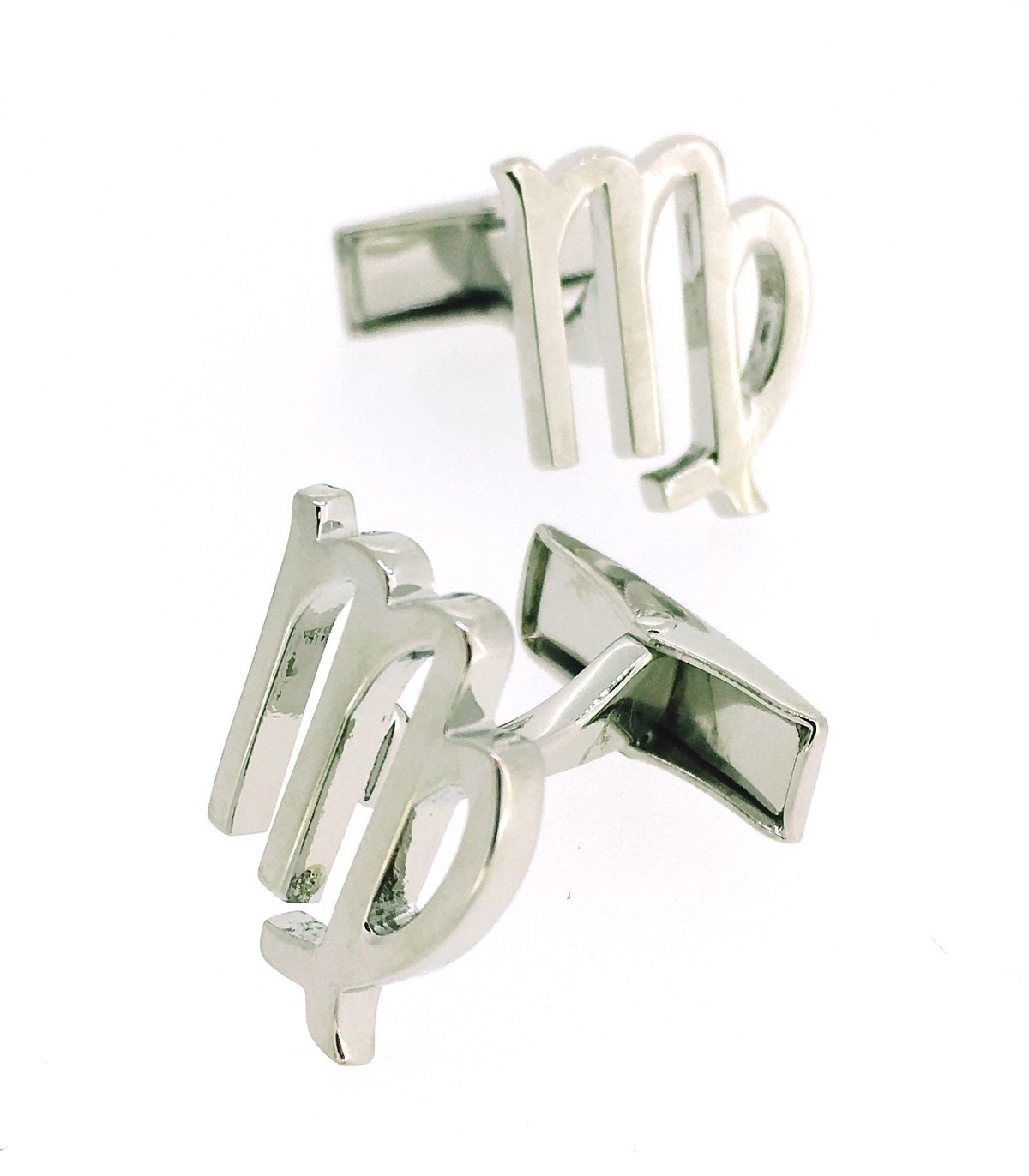 <p><strong></strong>Gemelos de camisa que representan el símbolo del horóscopo Virgo en color plateado.</p>