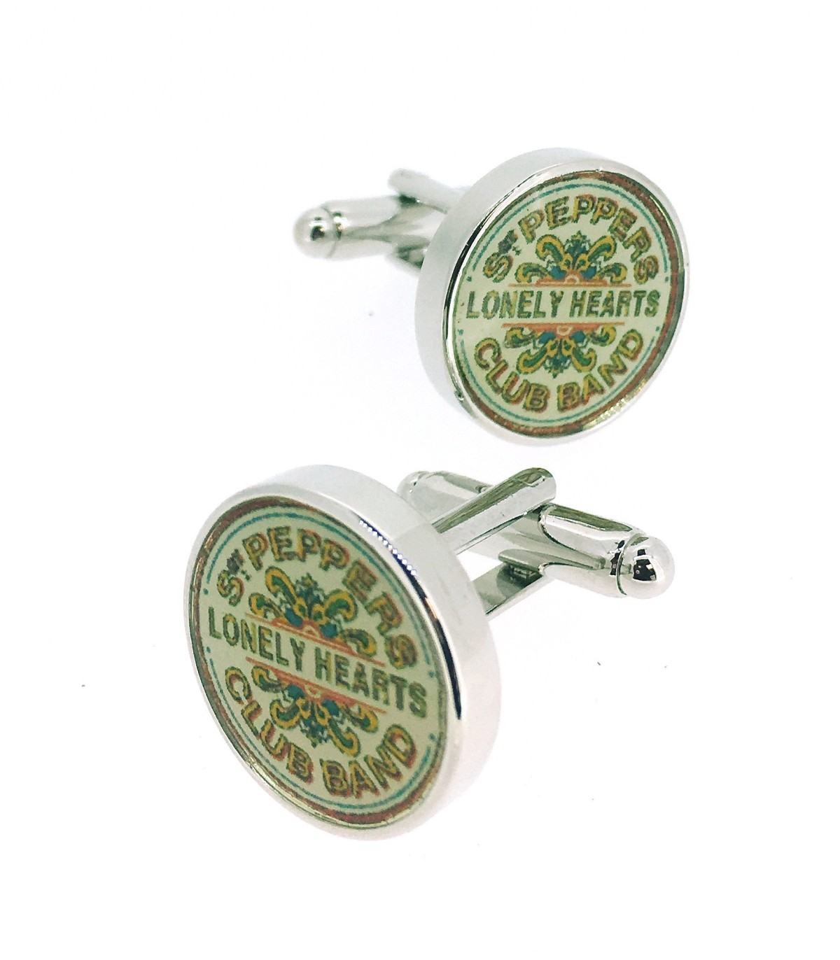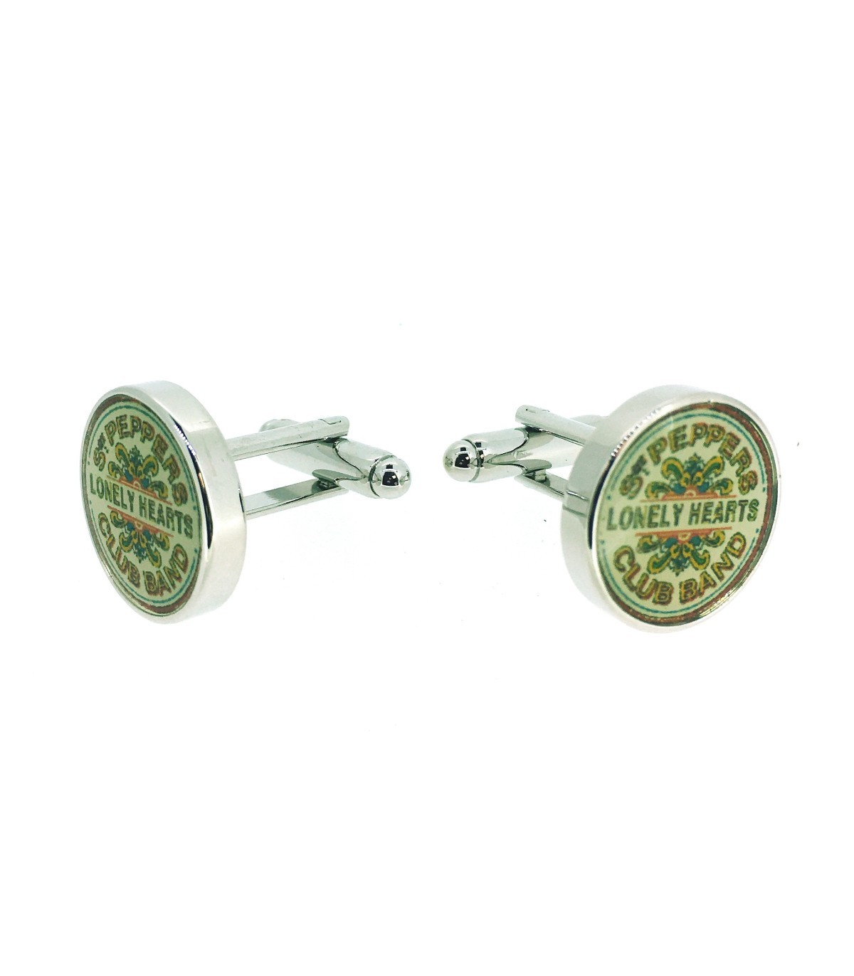 <p><strong></strong>Gemelos de camisa de forma redonda que representa el disco de Los Beatles St Peppers Lonely hearts club band en colores variados.</p>
