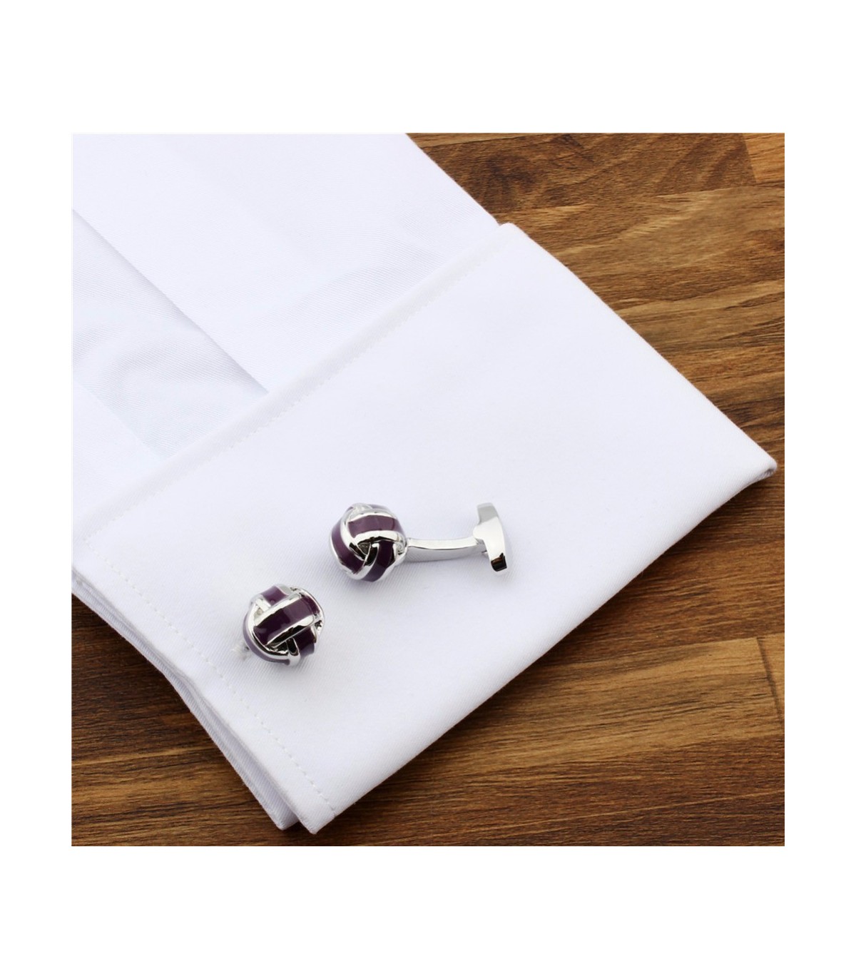 <p style= text-align: justify; ><strong></strong>Gemelos de camisa fabricados en laton y esmalte de color morado que hará las delicias de cualquier look</p>