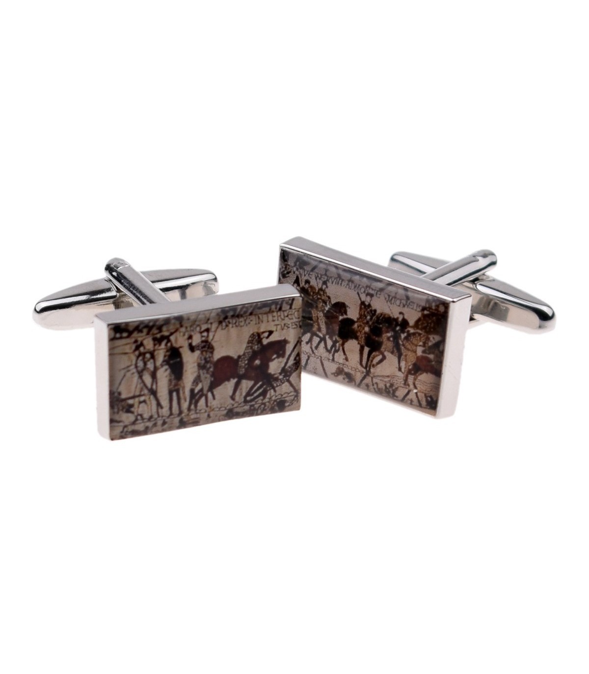 <p>Gemelos para Camisa que representan en forma de cuadro la batalla de Bayeux entre los bandos británico y francés.</p>