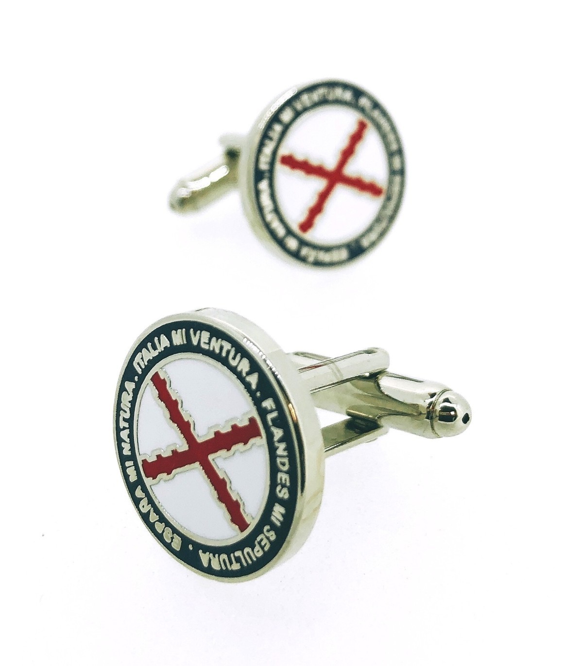 <p><strong>Gemelos para camisa Tercios España Mi Natura Italia mi Ventura Flandes mi Sepultura </strong><strong>- </strong>Tamaño perfecto de 17 mm. Gemelos realizados en laton y esmalte.</p>