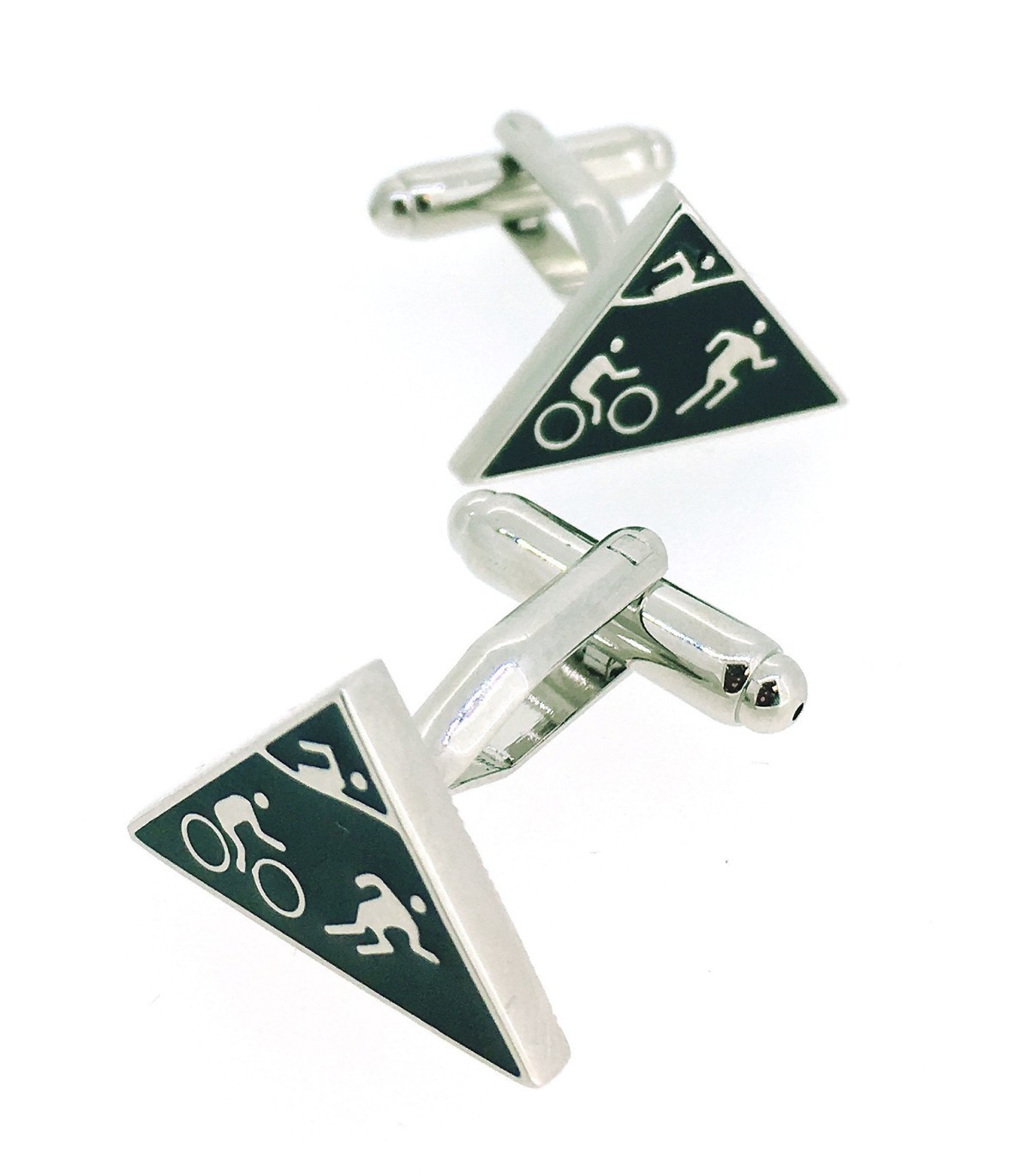 <p style= text-align: justify; >Gemelos para camisa de Triatlón. Triathlon Cufflinks. De Acero Rodiado y Esmalte. Tamaño 19 mm</p>