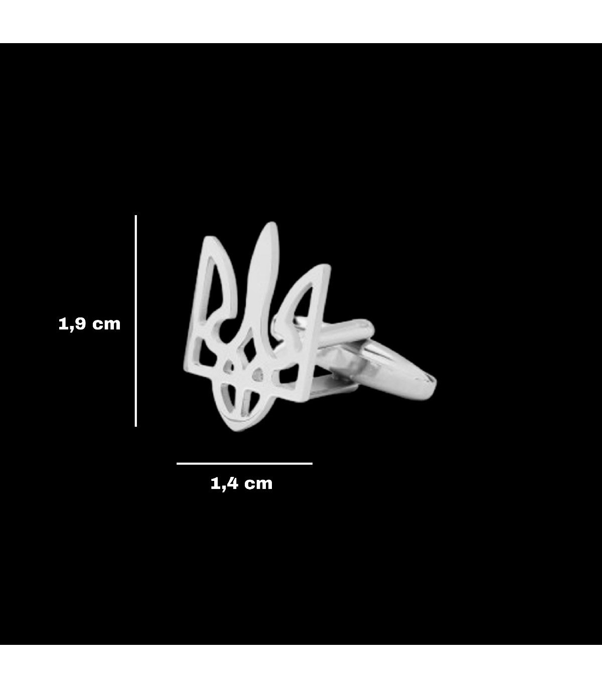 Gemelos para camisa con la forma del tridente de Ucrania , realizados en Acero Inoxidable con un tamaño de 19x14mm. Estuche incluido.