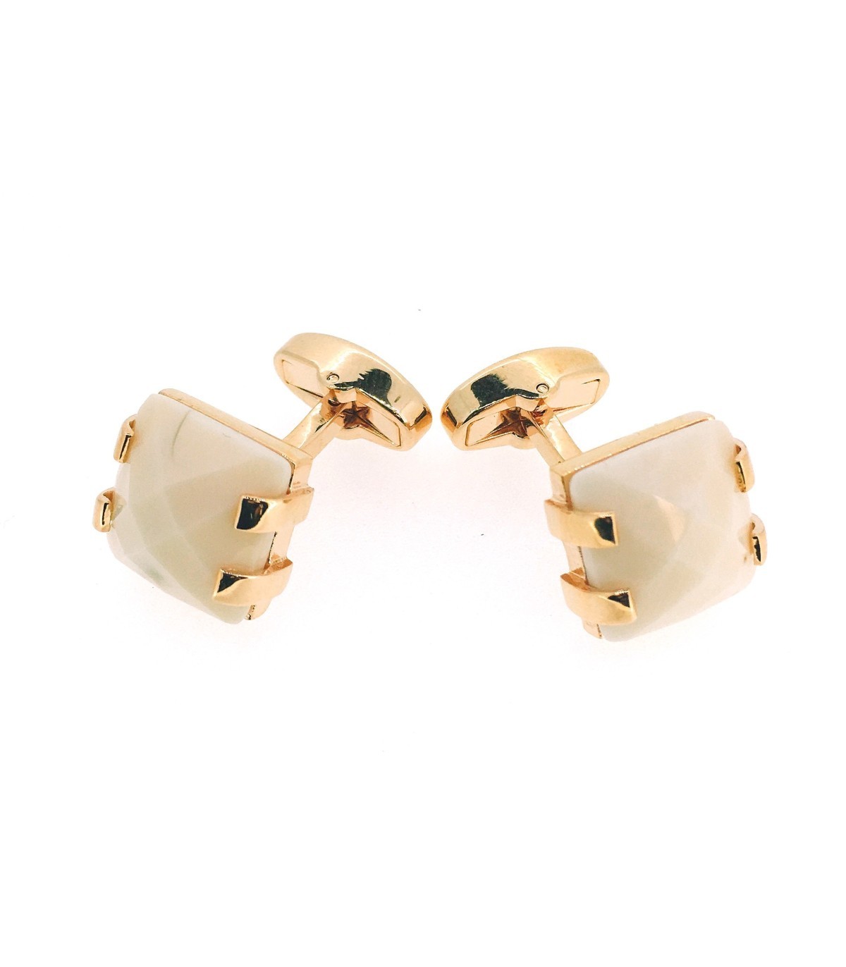 <p><strong></strong>Gemelos de camisa de forma cuadrada, Un gemelo conuna piedra blanca engarzada en colores oro rosado.</p>