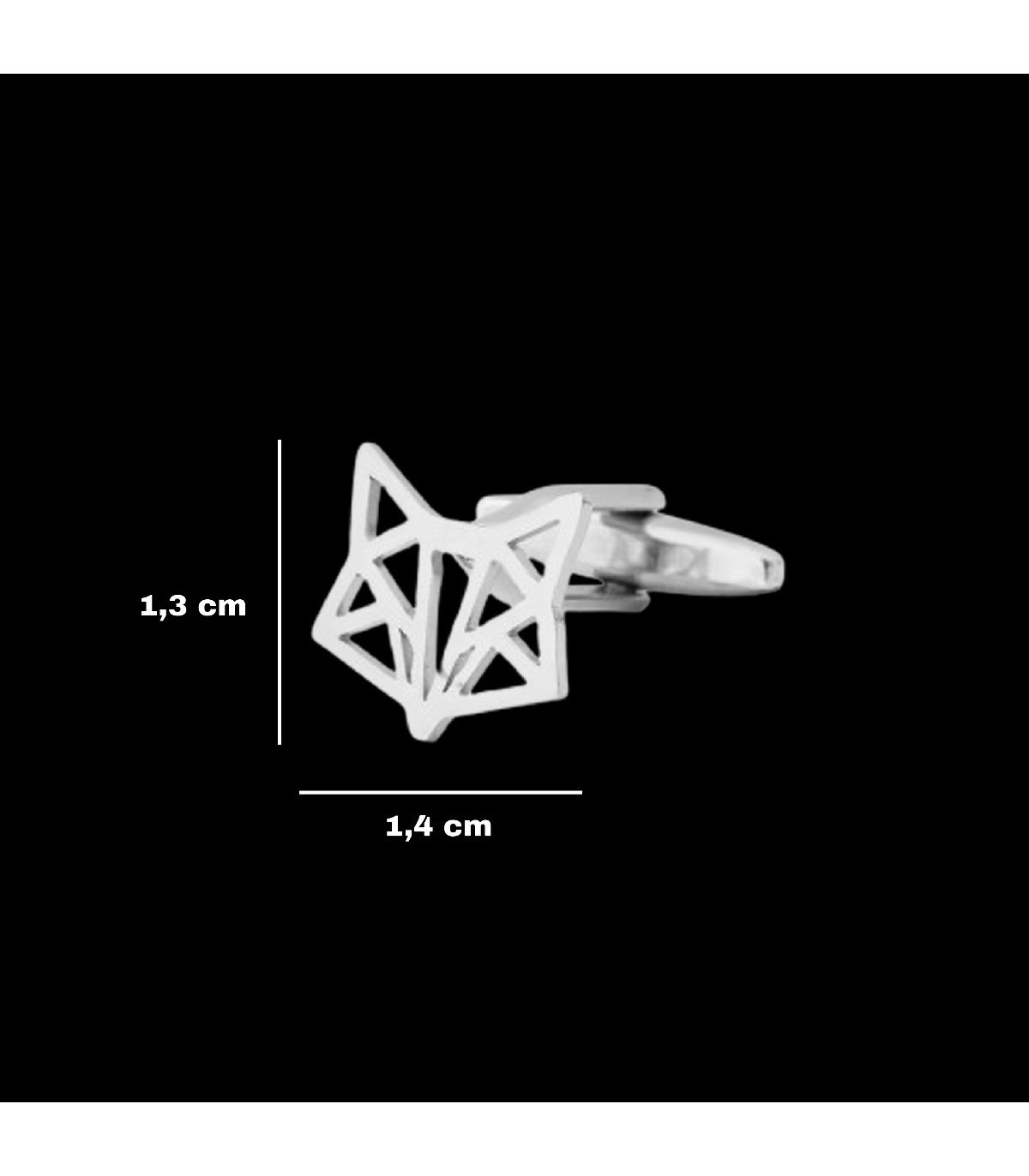 Gemelos para camisa con forma de cabeza de zorro. Realizados en Acero Inoxidable con un tamaño de14mm. Estuche incluido.