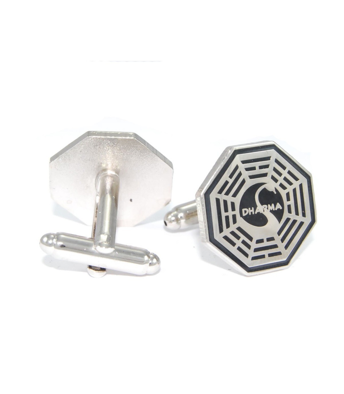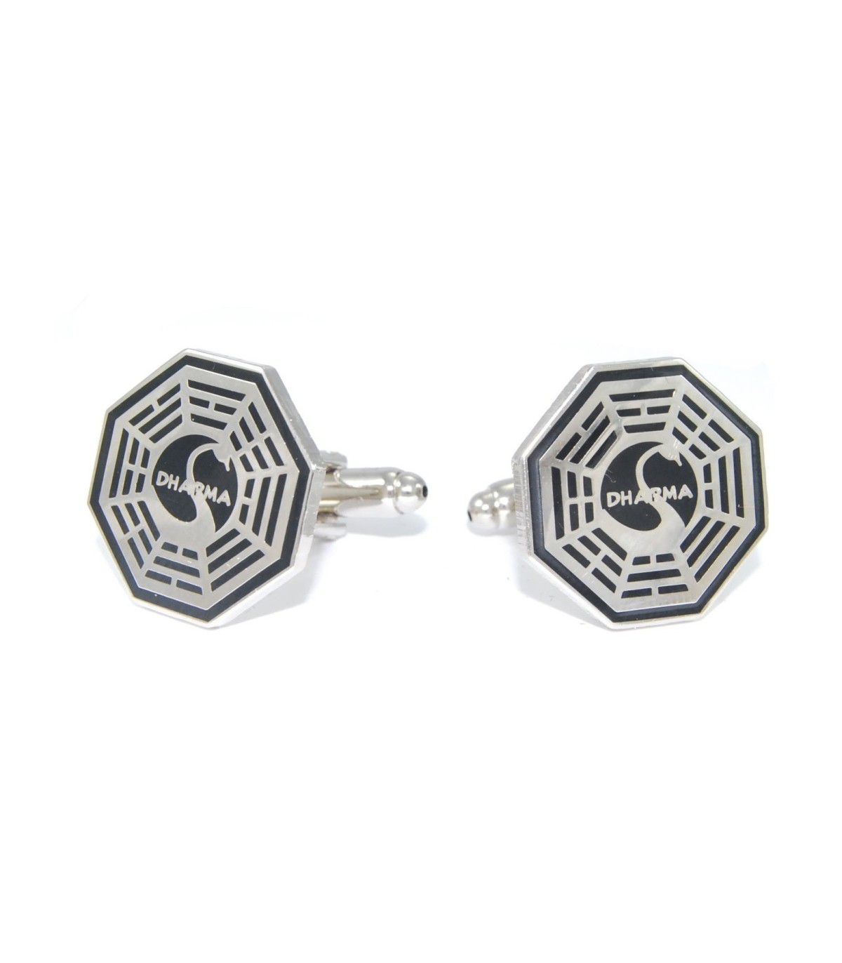 <p style= text-align: justify; >Gemelos Dharma de la serie perdidos. De acero rodiado, esmaltado y con baño antialérgico. Tamaño 18 mm.</p>