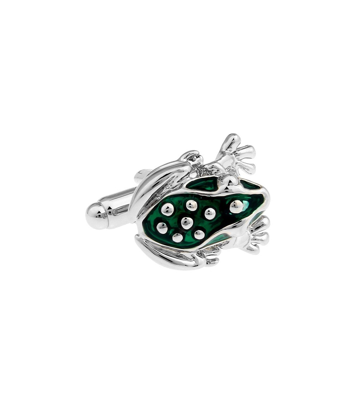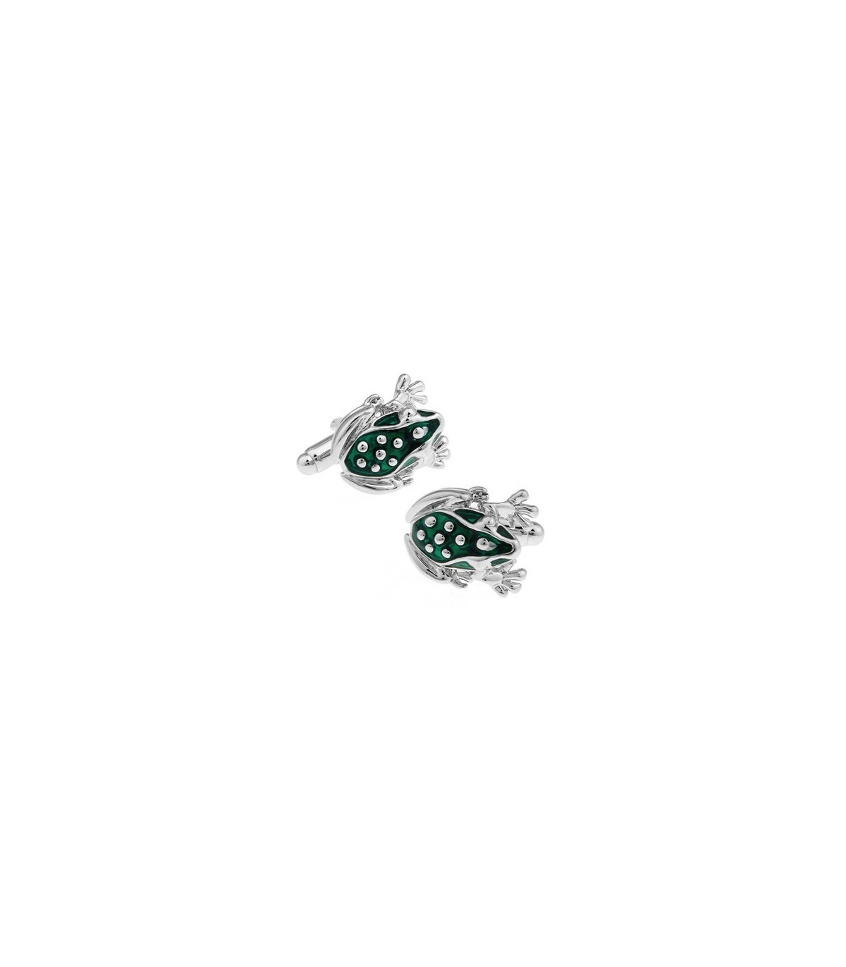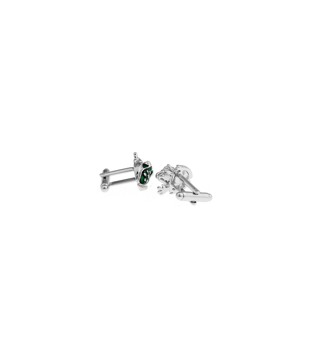 <p>Gemelolandia.com, gemelos para camisa que representan una Rana de color verde esmaltado en acero rodiado y en 3D.</p>