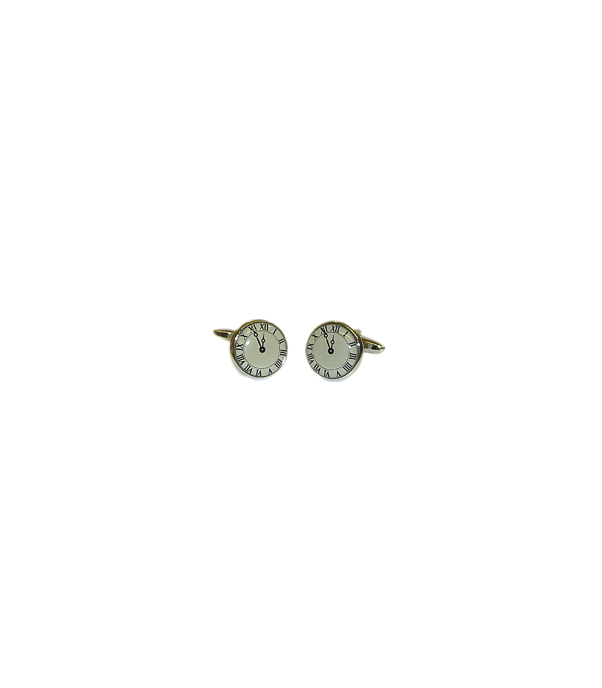 <p style= text-align: justify; ><strong>Gemelos </strong>Reloj Clásico, fabricados en Acero Rodiado, Esmaltado en color Blanco y con un baño antialérgico. Tamaño de 18 mm.</p>