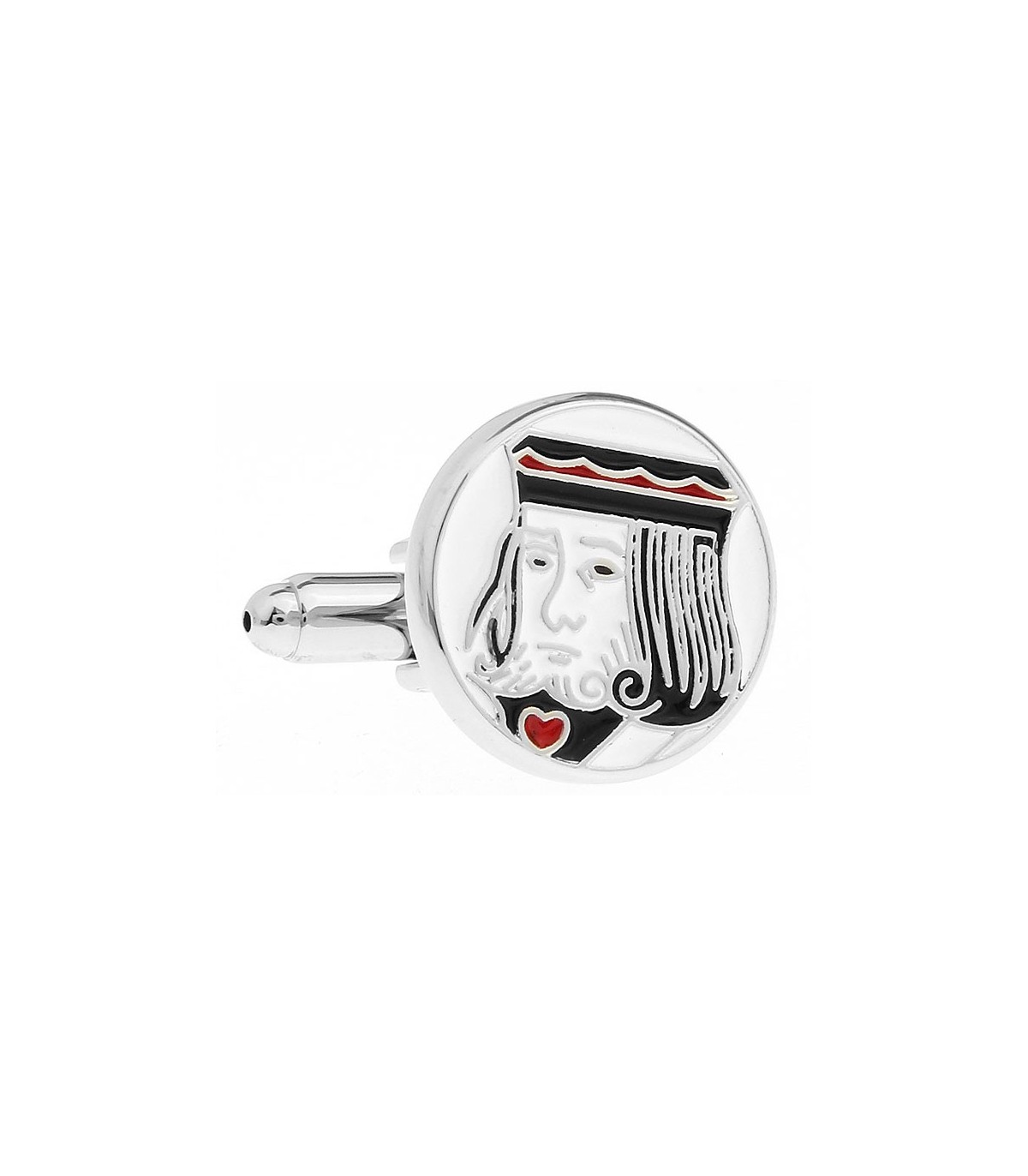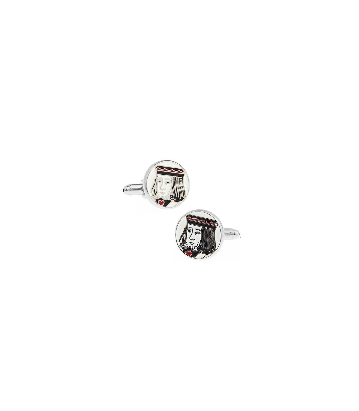 <p><strong>Gemelos </strong>Rey de Corazones, de Acero Rodiado, Esmaltados y Antialérgicos. Tamaño perfecto de 18 mm.</p>