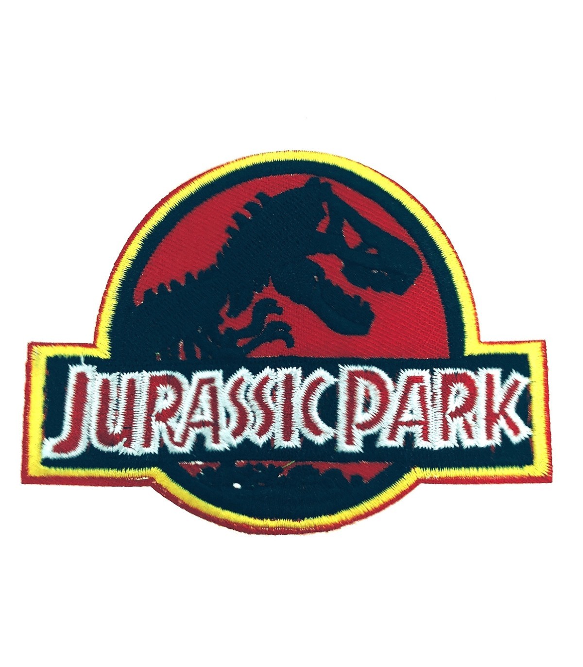 <p>Gemelolandia presenta este parche que representa la pelicula de Jurassic Park en colores rojo, negro y amarillo.</p>